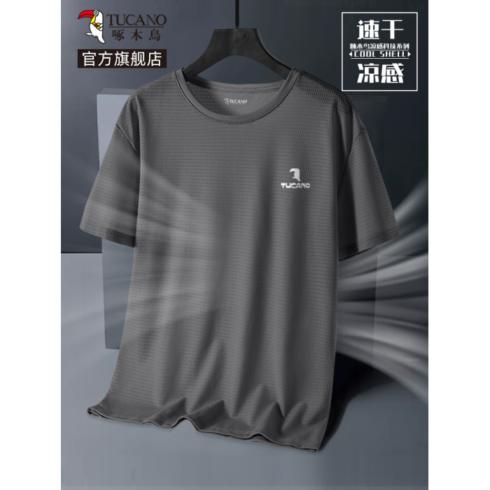 啄木鳥冰絲短袖男夏季網眼透氣運動健身速乾衣t恤男士夏天衣服薄Y
