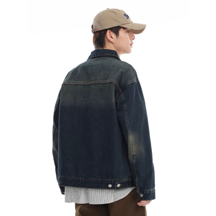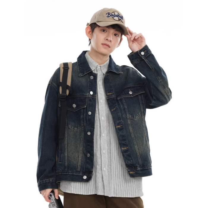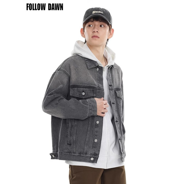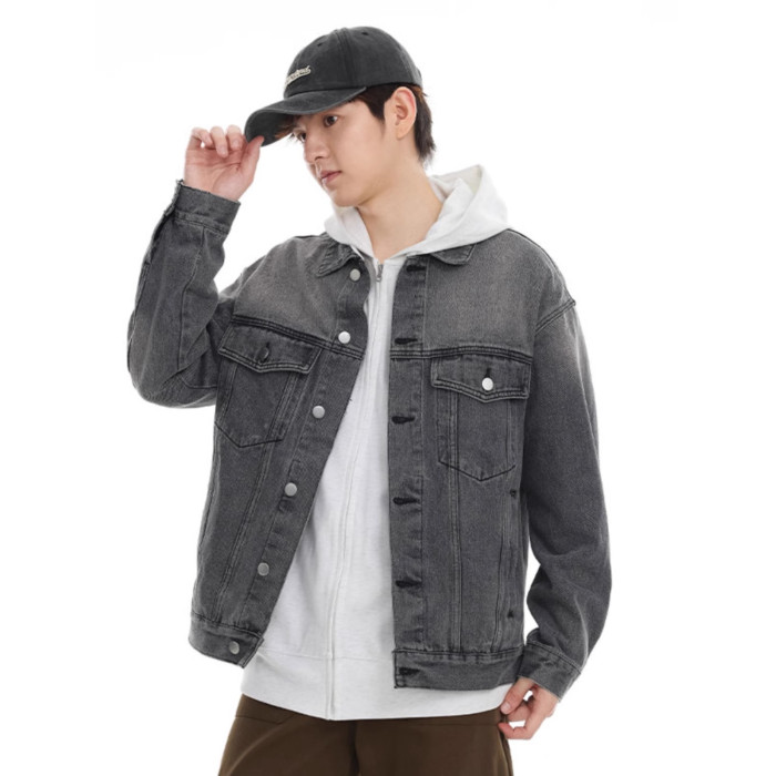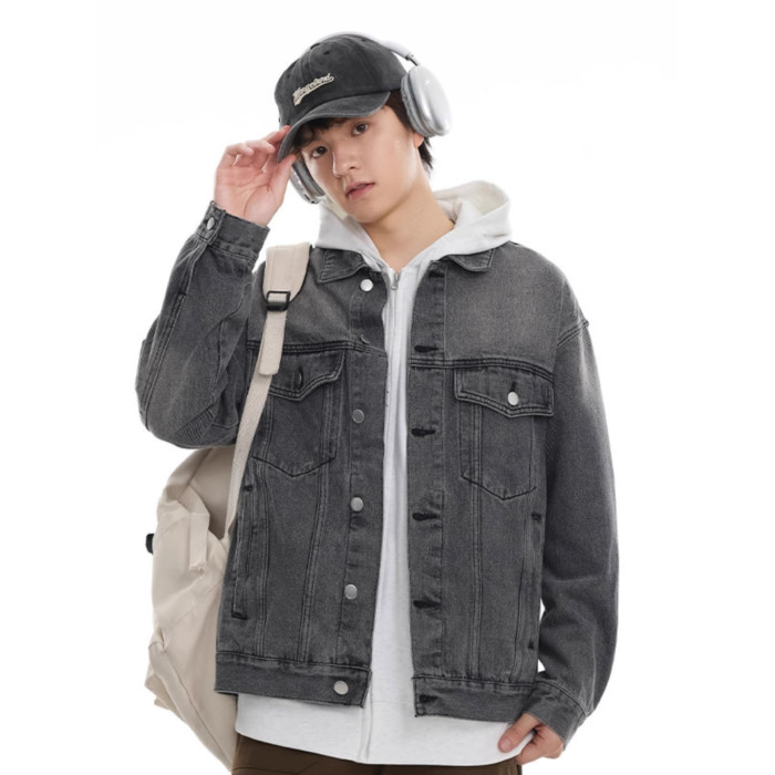 美式灰色牛仔外套男秋季新款潮牌重磅水洗做舊休閒夾克上衣