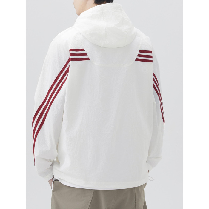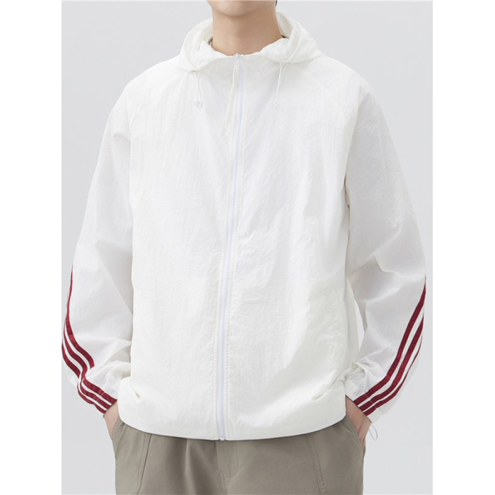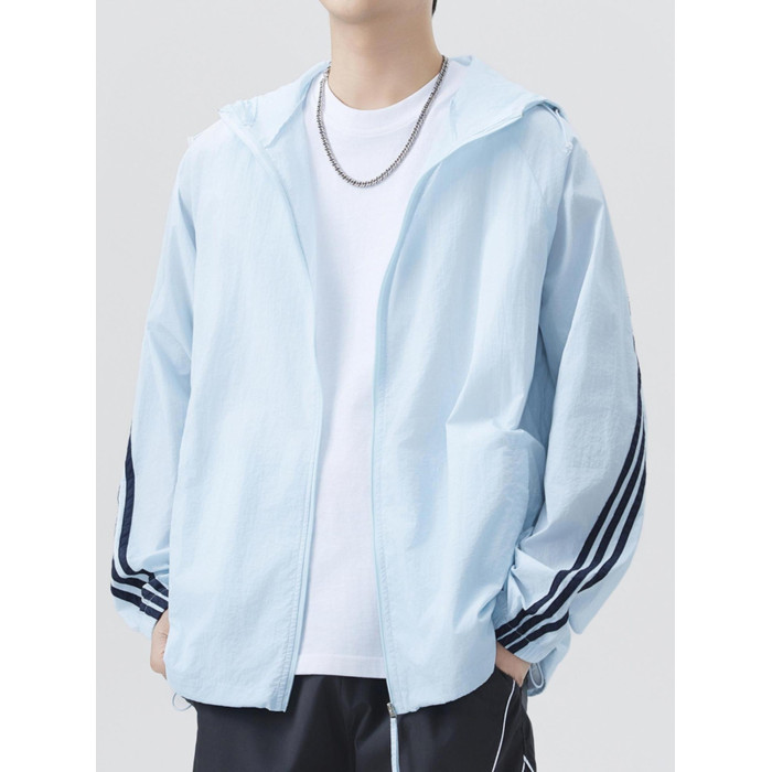 條紋透氣速乾防曬衣男士夏季輕薄冰絲運動防紫外線連帽外套