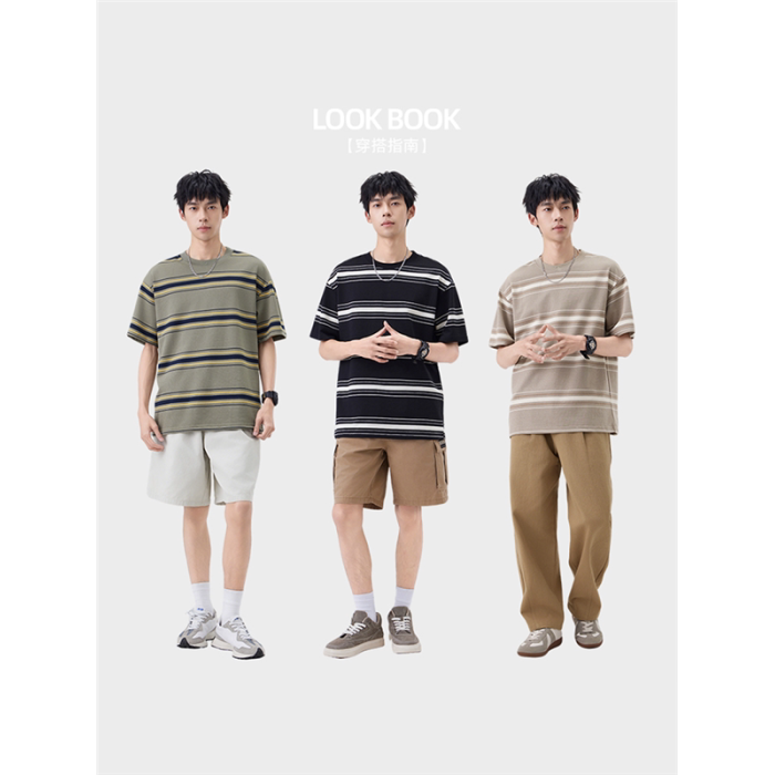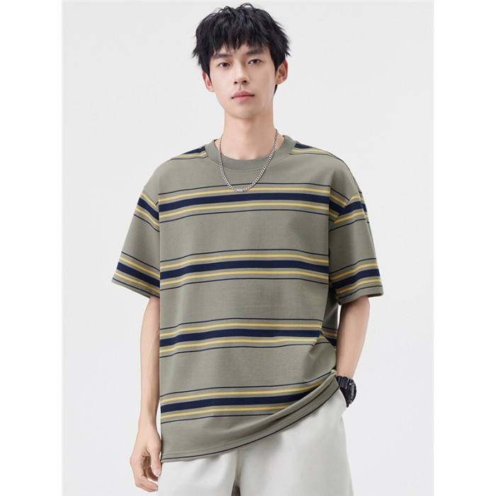 美式復古條紋短袖t恤男2025夏季潮牌寬松休閒情侶款上衣ins體恤