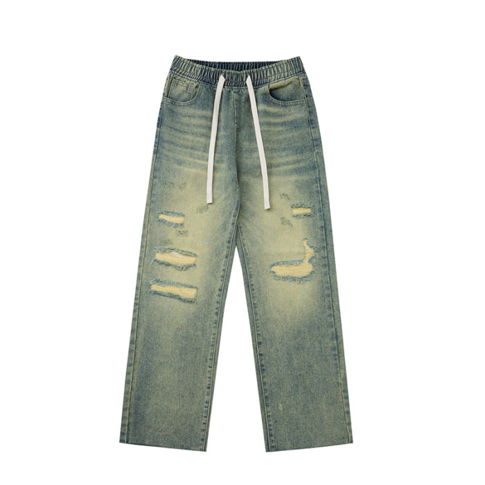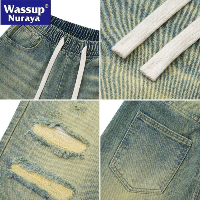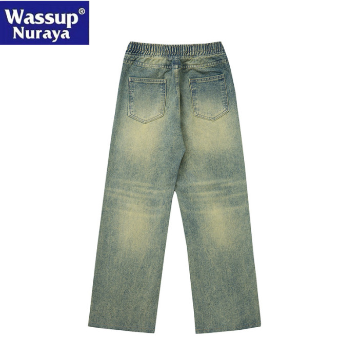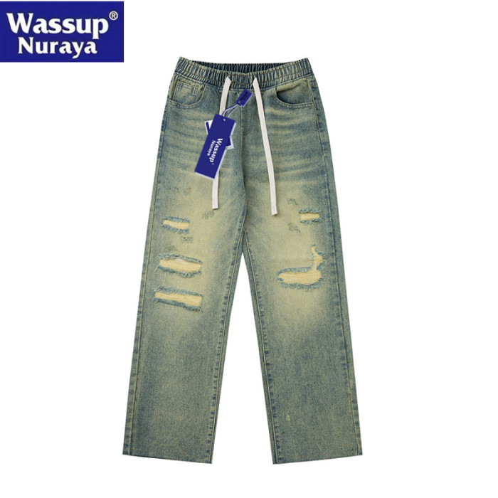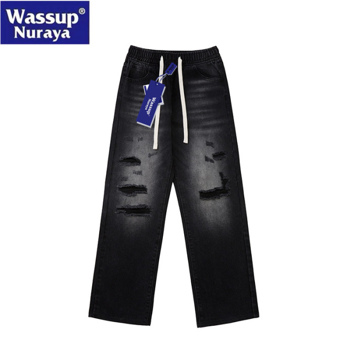 WASSUP Nuraya潮牌美式復古寬松破洞破牛仔褲男韓版新款垂感褲子