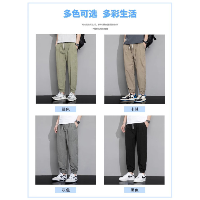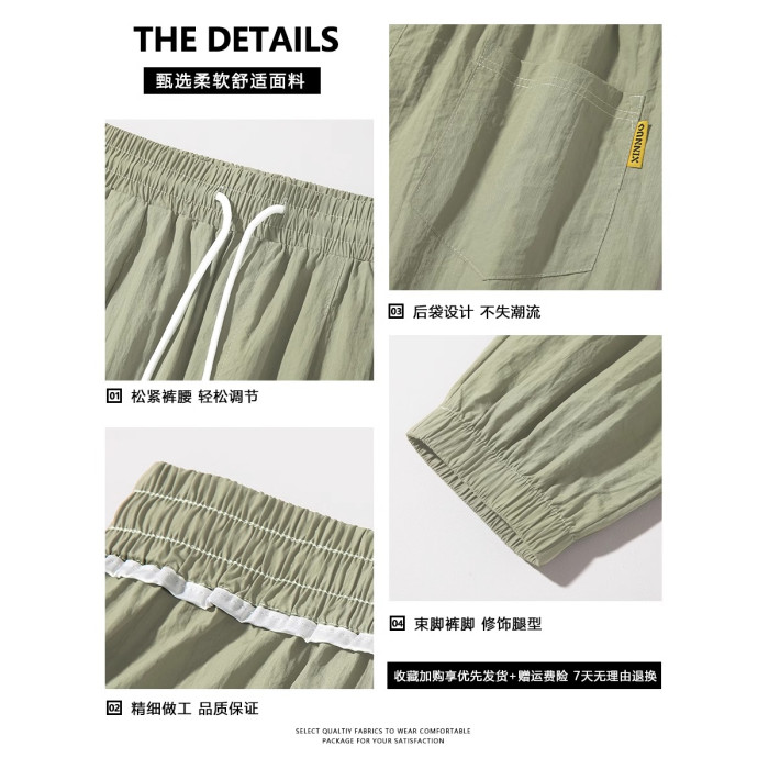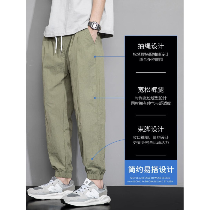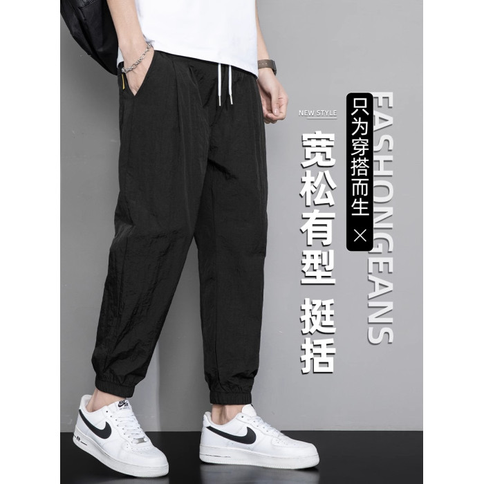 2025夏季新款休閒褲男士新款寬松束腳九分褲運動潮牌薄款冰絲長褲