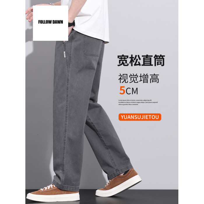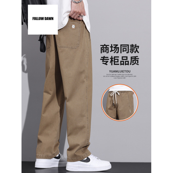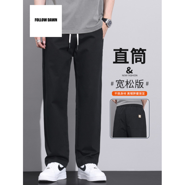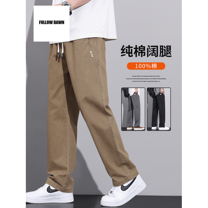 純棉直筒休閒褲男士春秋款美式濶腿寬松垂感工裝褲子男款