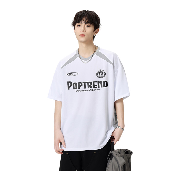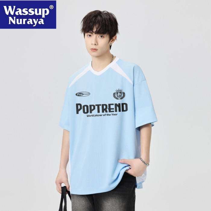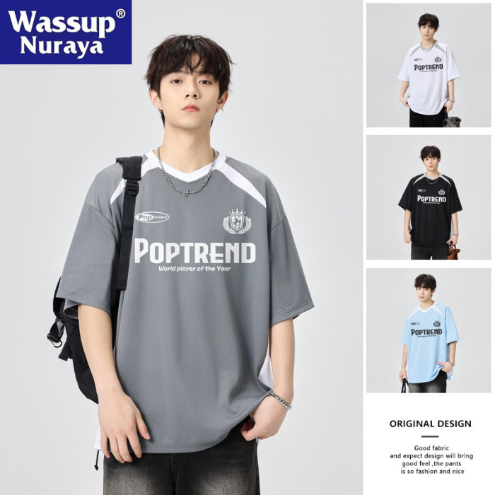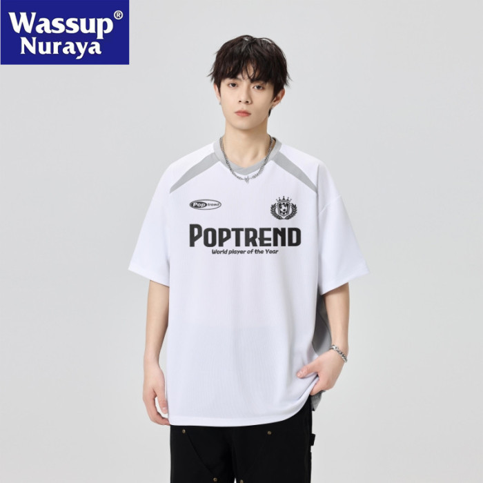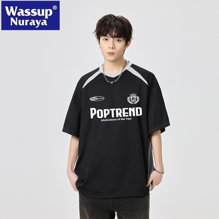 WASSUP NURAYA賽車短袖男夏薄運動速乾透氣t恤拼接半袖休閒上衣T