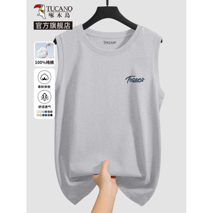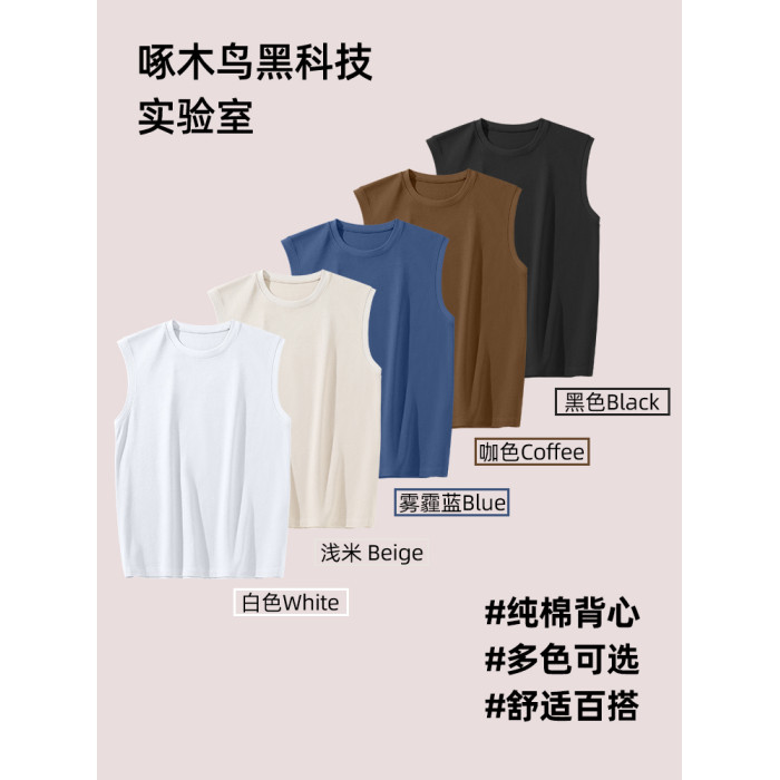 啄木鳥灰色背心男純棉2025夏季新款寬松大碼無袖t恤男士運動上衣Y