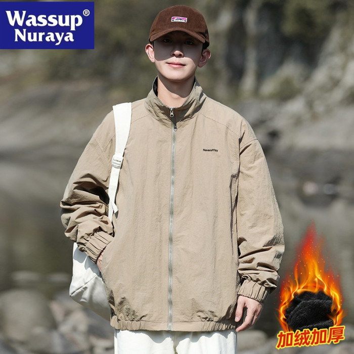 WASSUP NURAYA山系立領夾克男秋冬加絨寬松休閒潮牌青年運動外套