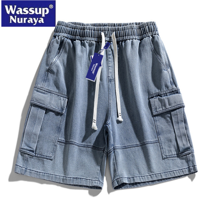 WASSUP Nuraya潮牌漸變牛仔短褲男夏季美式寬松休閒工裝五分褲子