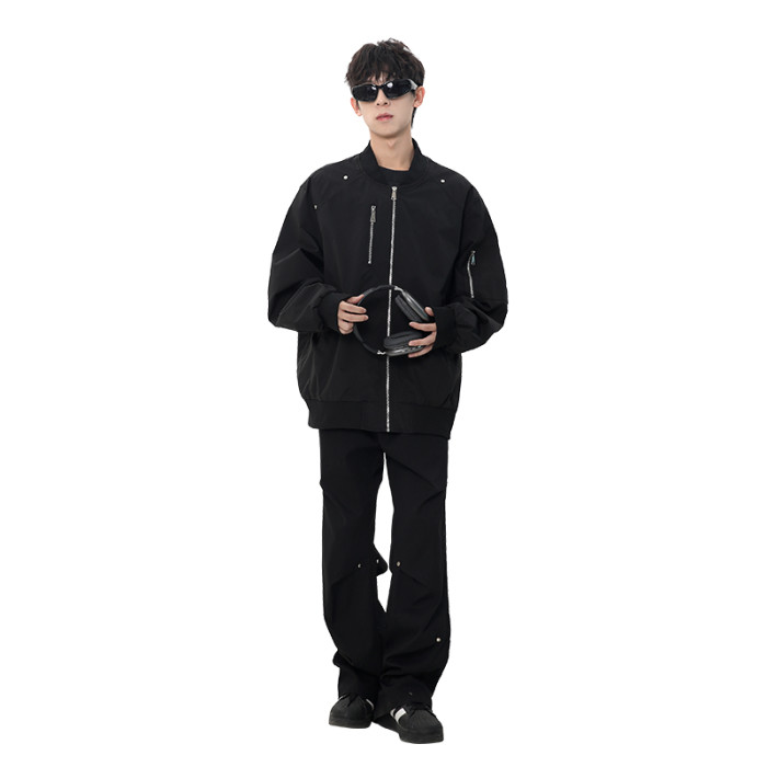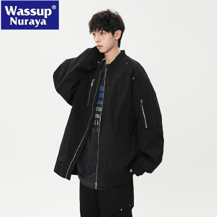 WASSUP NURAYA棒球領夾克男士春秋新款寬松百搭拉鍊潮牌休閒外套