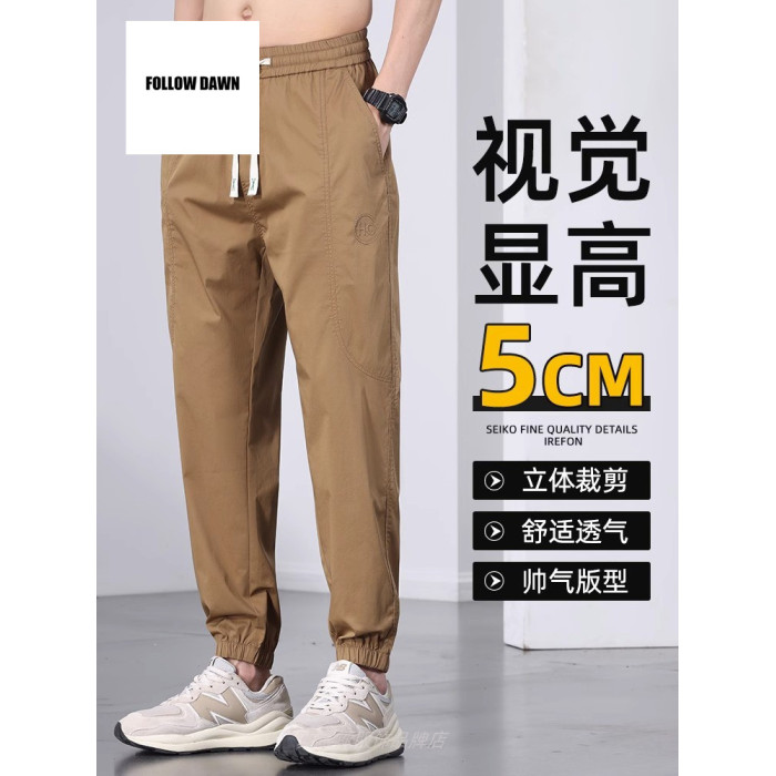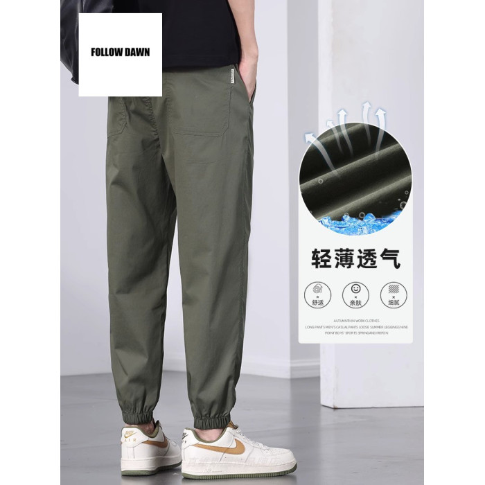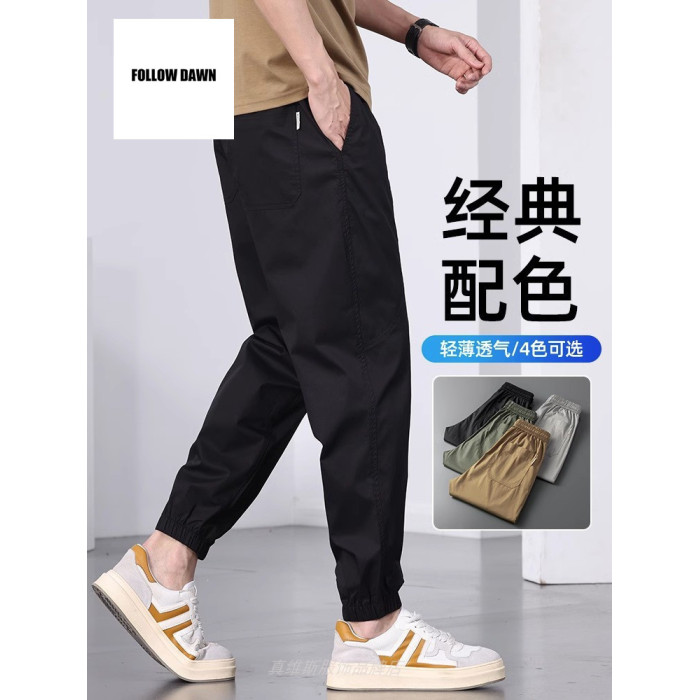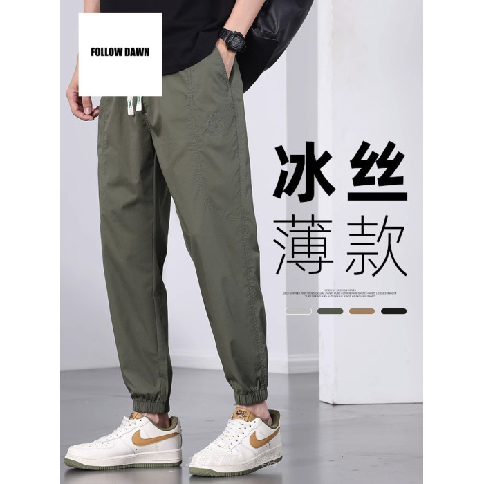 夏季薄款冰絲休閒褲男士寬松束腳運動褲潮牌百搭工裝九分