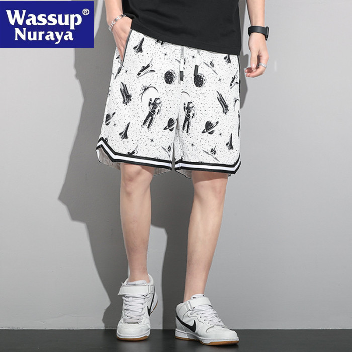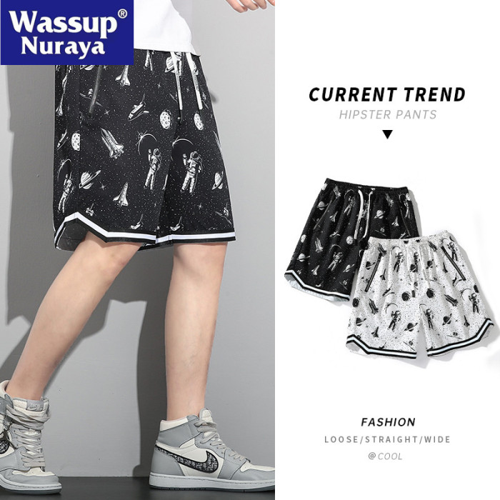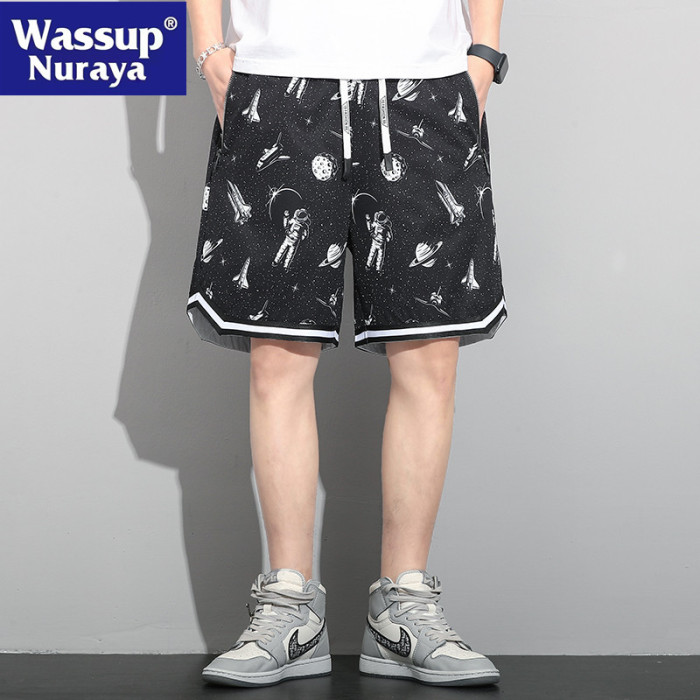 WASSUP NURAYA大碼冰絲短褲男夏寬松褲衩籃球運動五分休閒沙灘褲