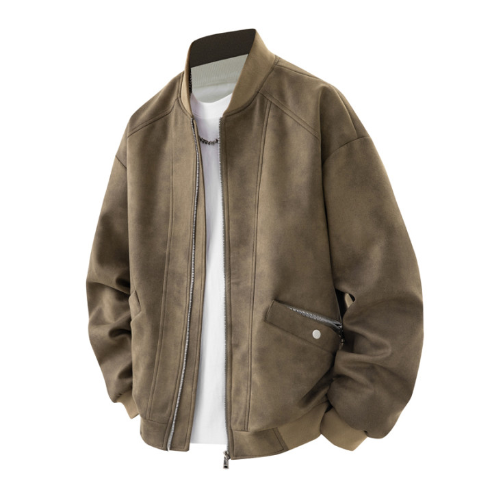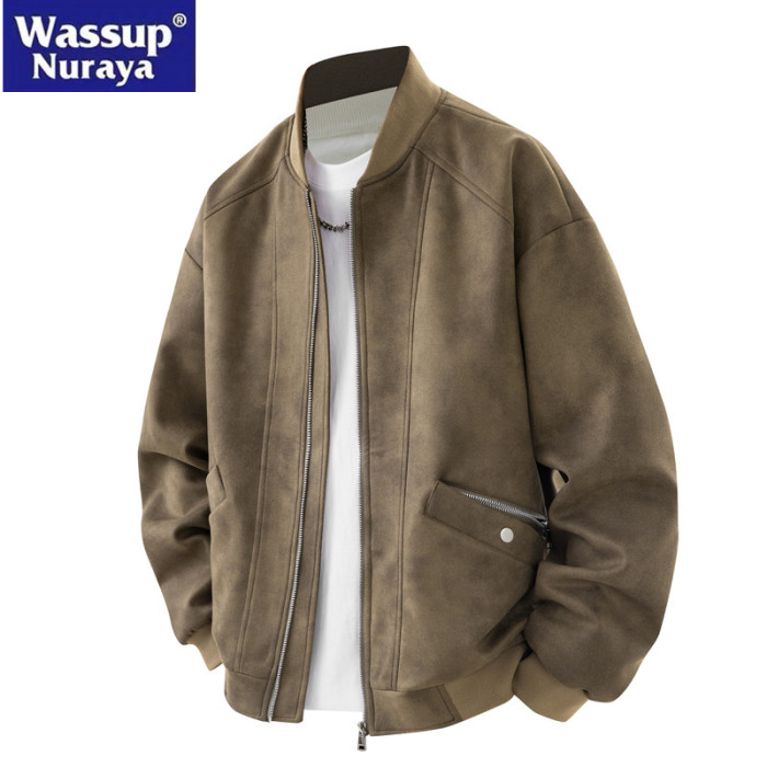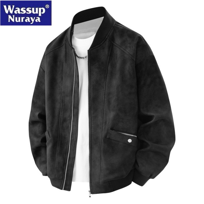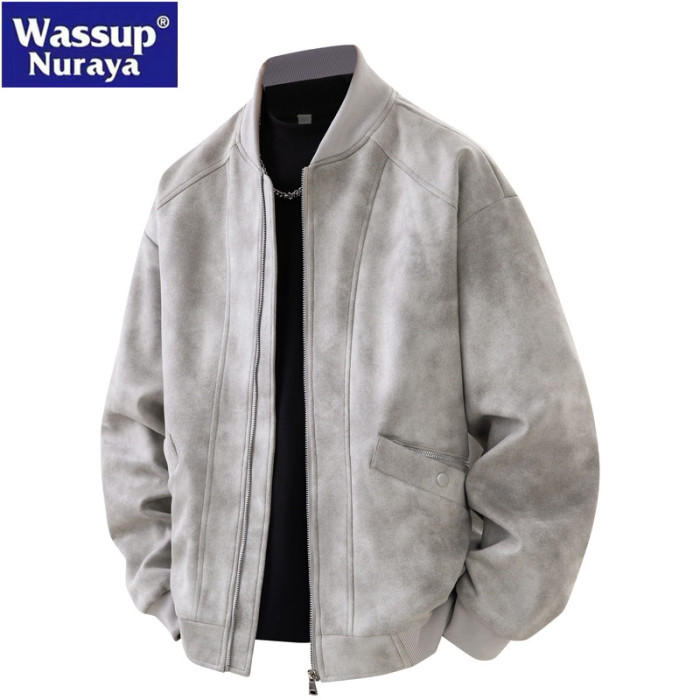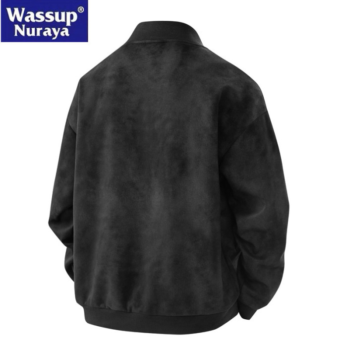 WASSUP Nuraya潮牌美式復古棒球領外套男士春秋美拉德麂皮絨夾克