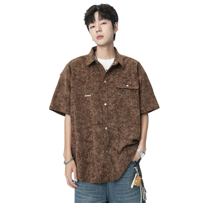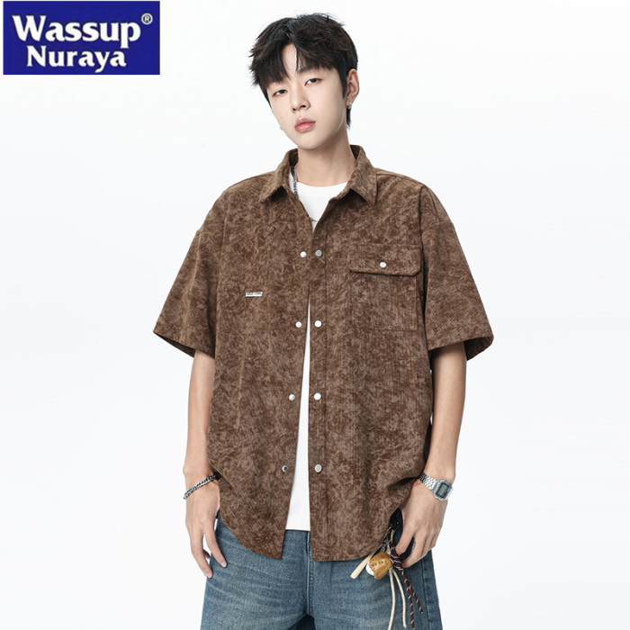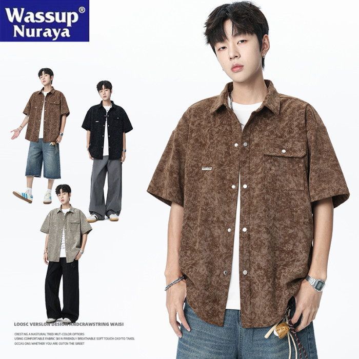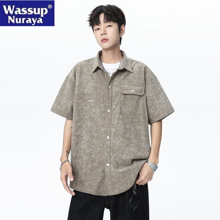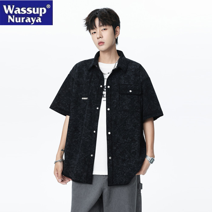 WASSUP NURAYA美式工裝紥染短袖襯衫男夏季翻領休閒青年半袖襯衣