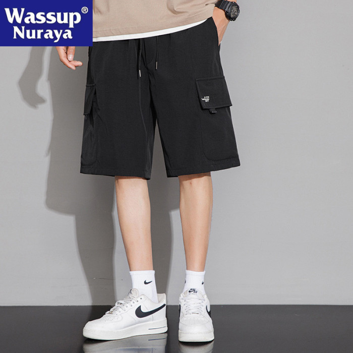WASSUP NURAYA短褲男士夏季寬松工裝運動冰絲速乾休閒五分中褲子