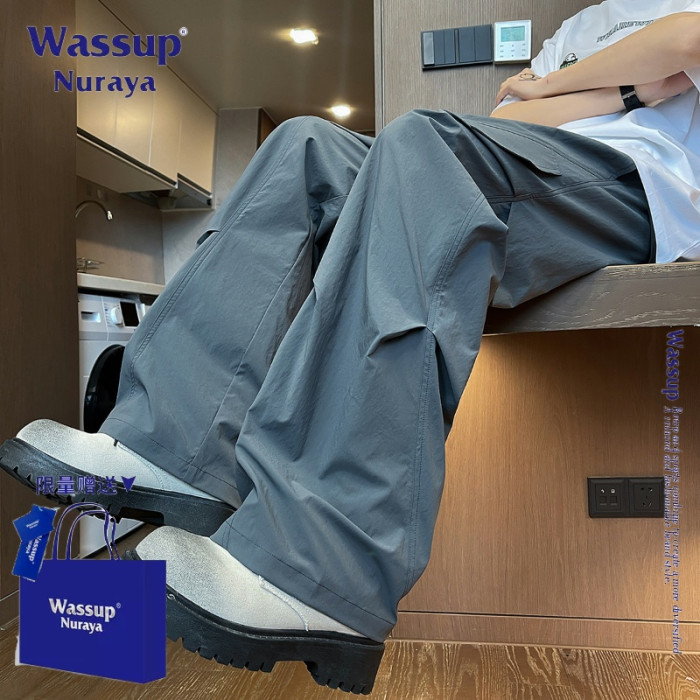 WASSUP NURAYA美式潮牌褶皺繖兵工裝褲男士夏季新款寬松休閒褲子