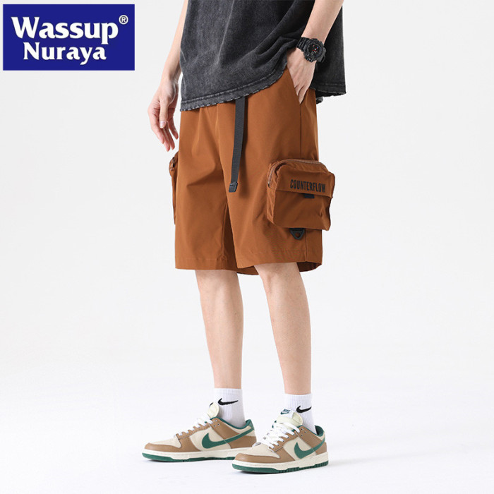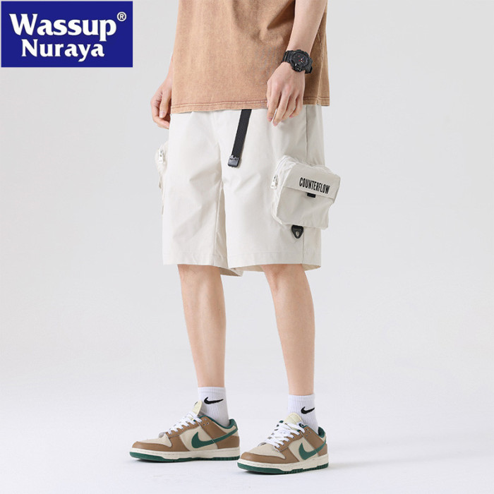 WASSUP NURAYA2025夏季休閒短褲戶外工裝大口袋透氣休閒五分中褲
