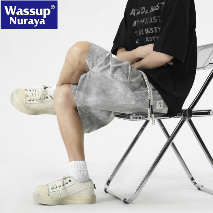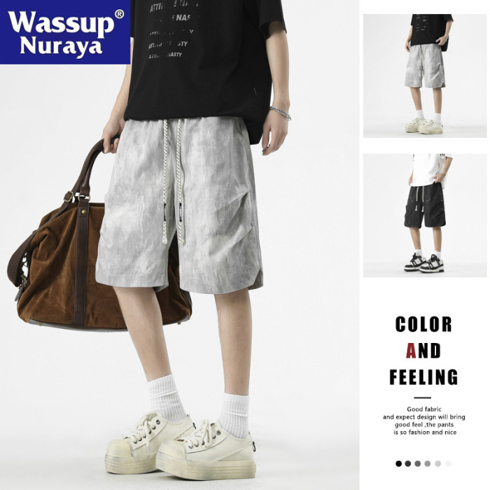 WASSUP NURAYA冰絲五分褲男夏季薄紥染直筒短褲潮運動休閒沙灘褲