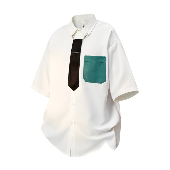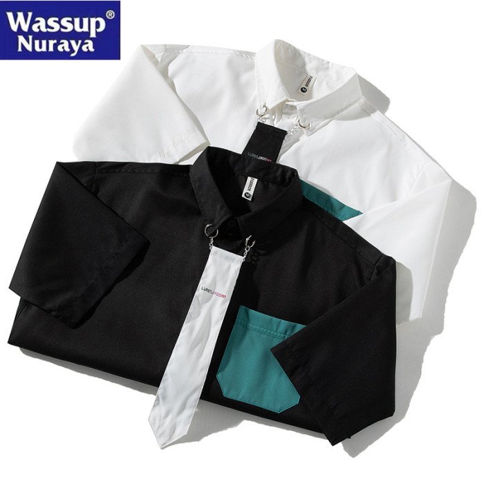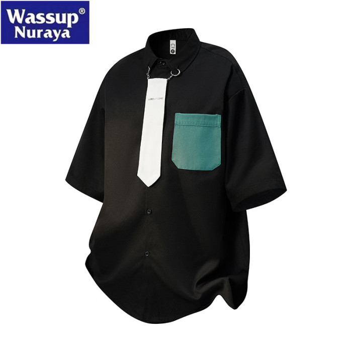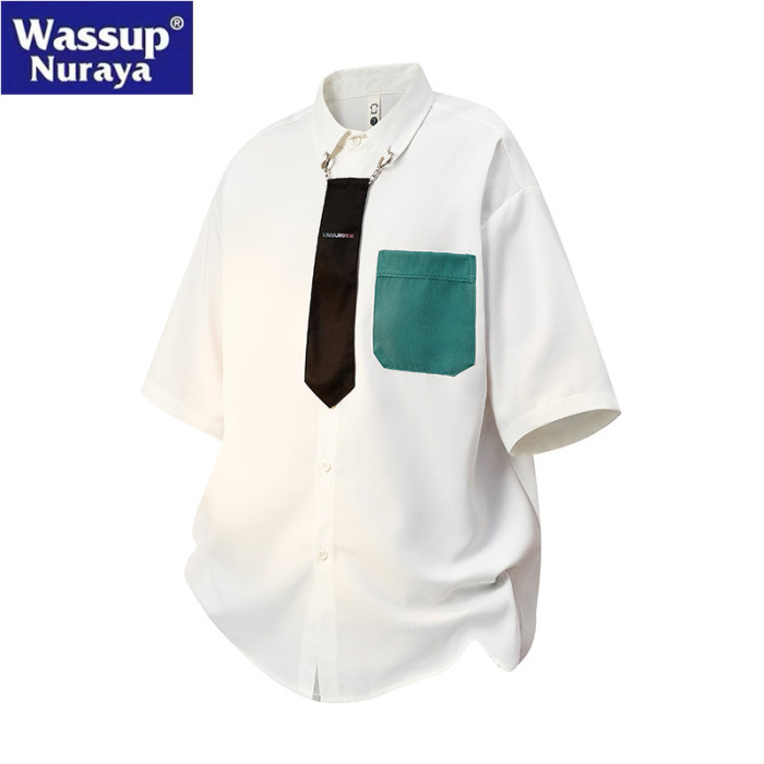 WASSUP Nuraya潮牌日系痞帥領帶襯衫男生短袖襯衣夏季學院風上衣