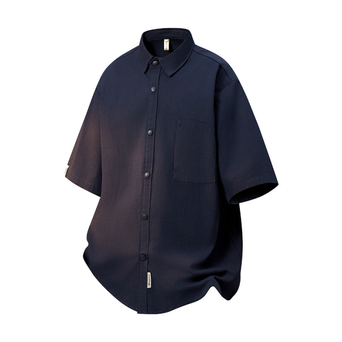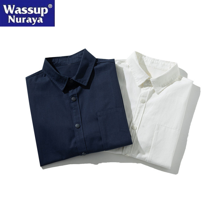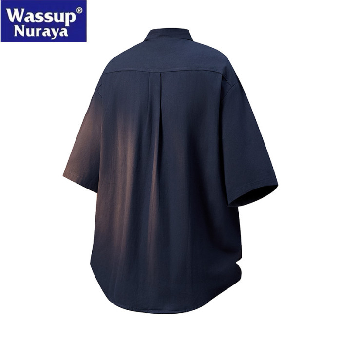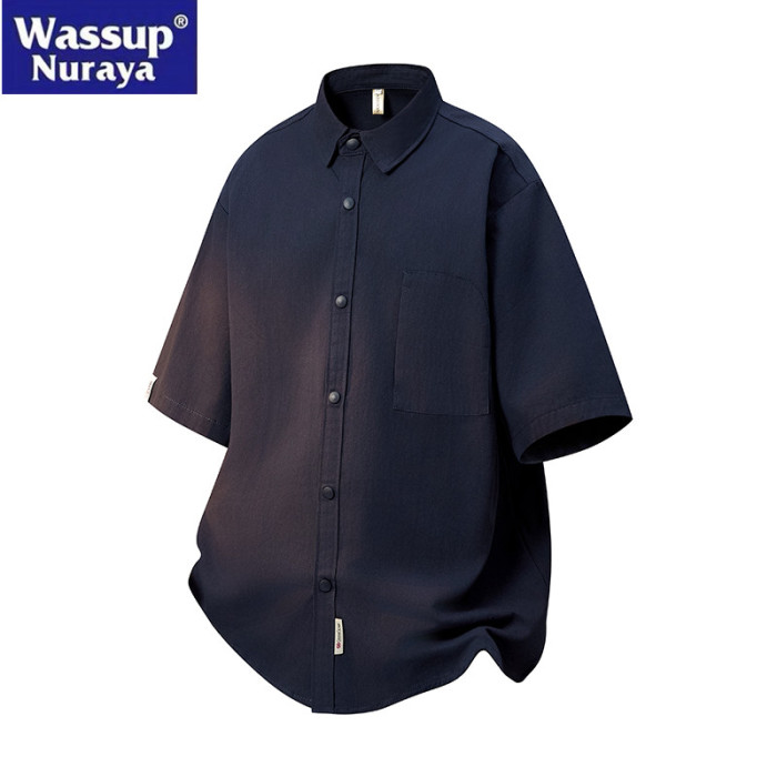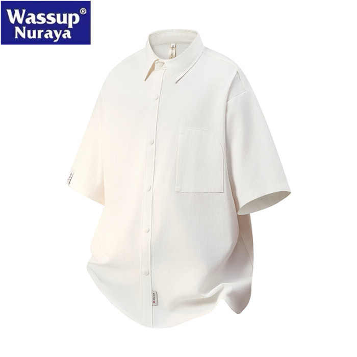 WASSUP Nuraya潮牌純色短袖襯衫男士夏季高級感痞帥純棉襯衣外套