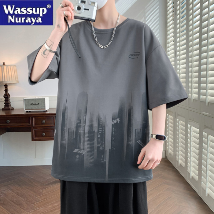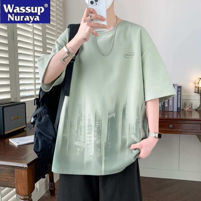 WASSUP NURAYA夏季新款短袖t恤男冰感寬松休閒青年圓領上衣體恤潮