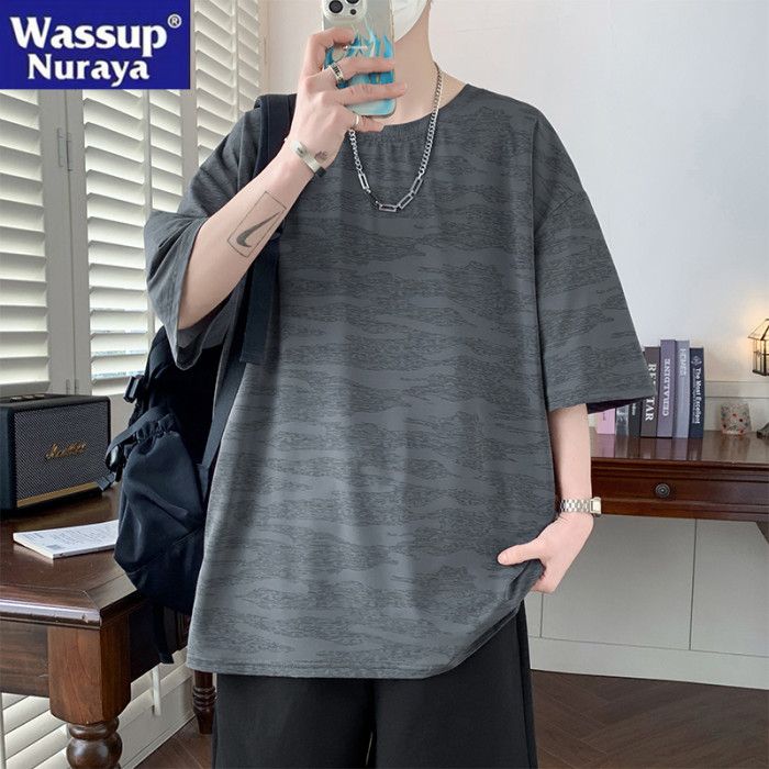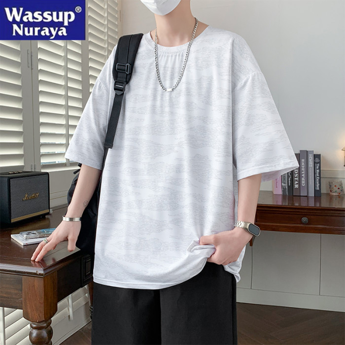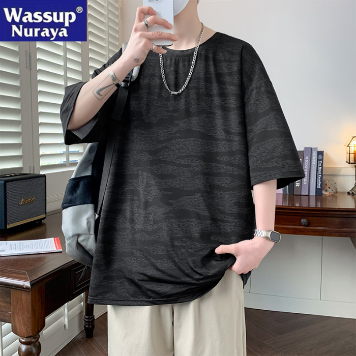 WASSUP NURAYA大碼冰絲短袖t恤男士夏季透氣迷彩休閒寬松速乾體恤