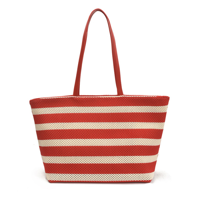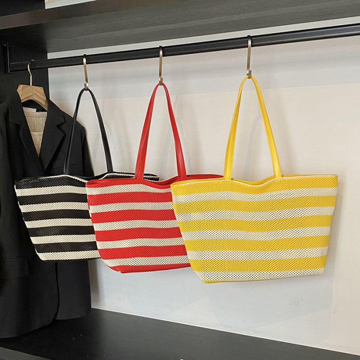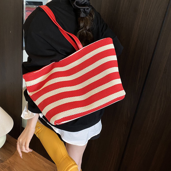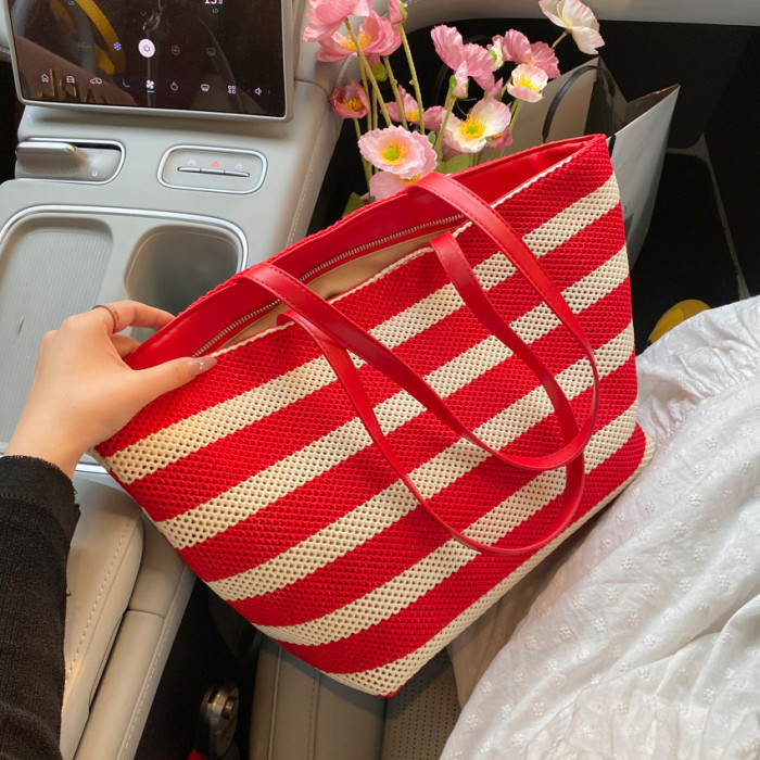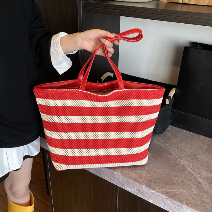 潮流感大容量條紋托特包女2025夏季新款編織大容量懶惰輕便單肩包