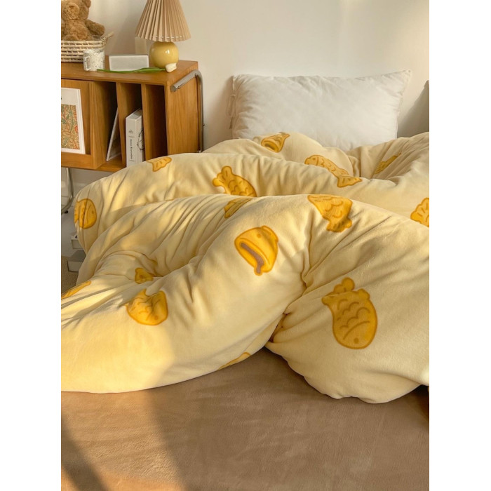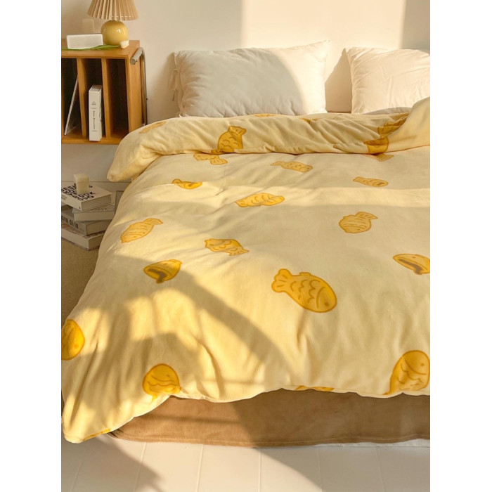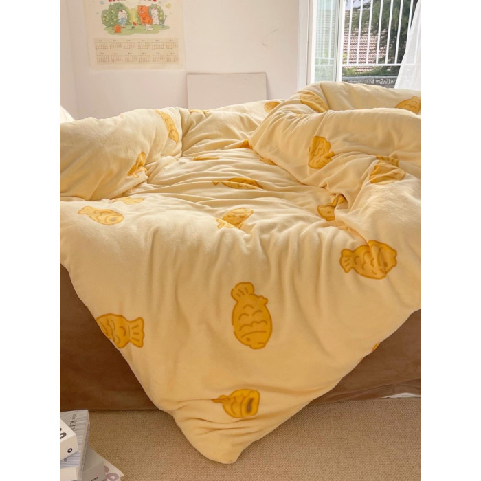 鯛魚燒|原創手繪插畫奶油絨被套可愛毛絨被罩單件冬季單雙人保暖