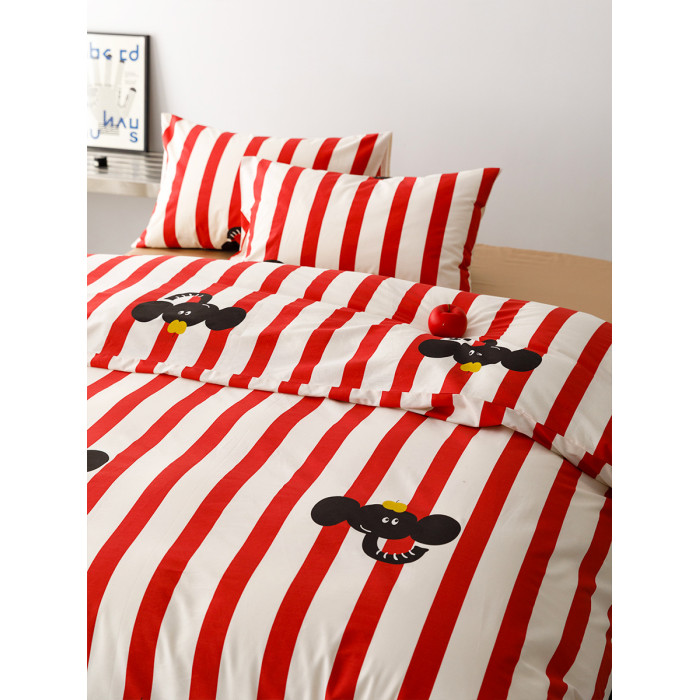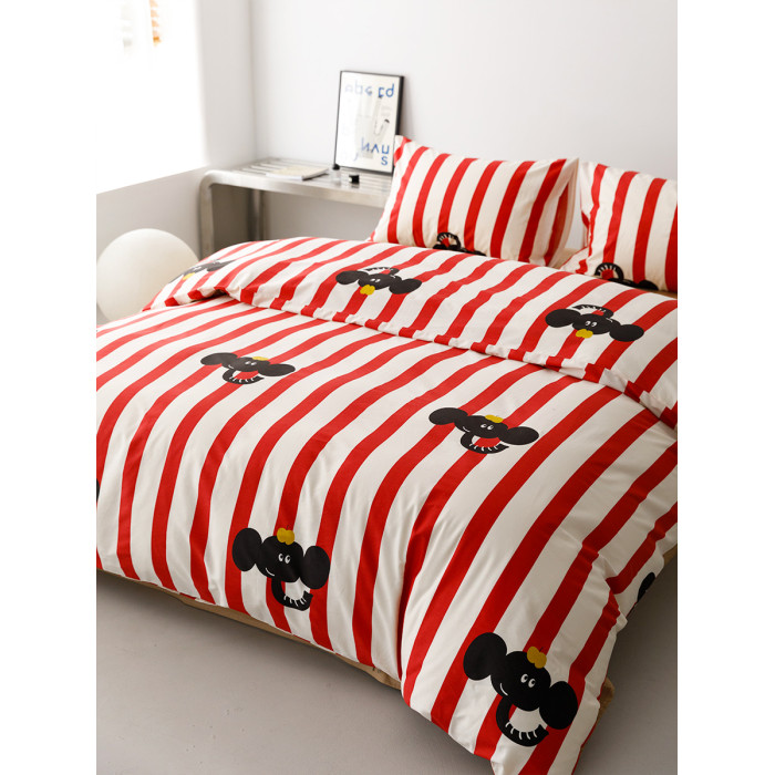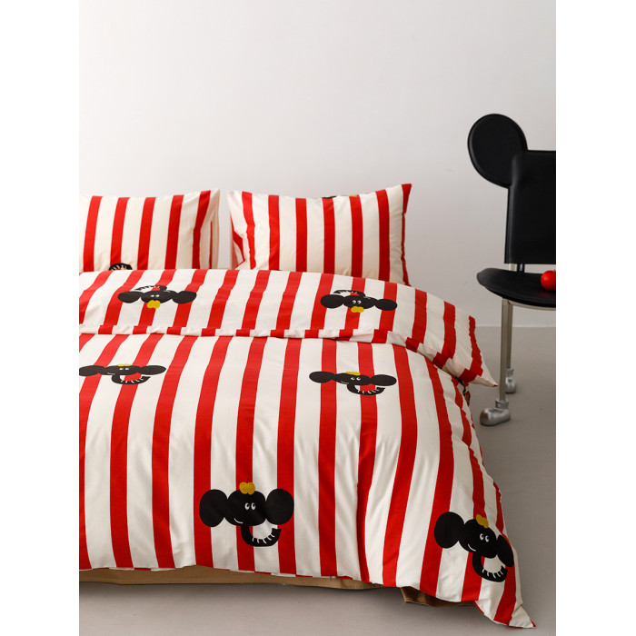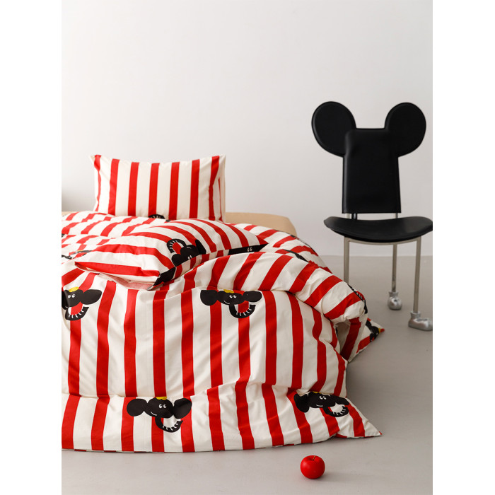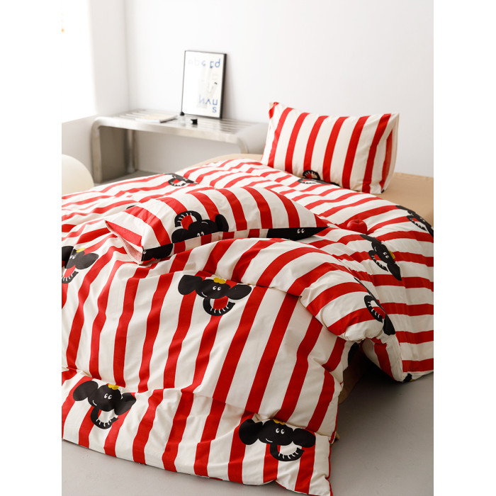 簡約復古紅色條紋小象純棉全棉被套單件宿舍1.5m1.8m2m單雙人被罩