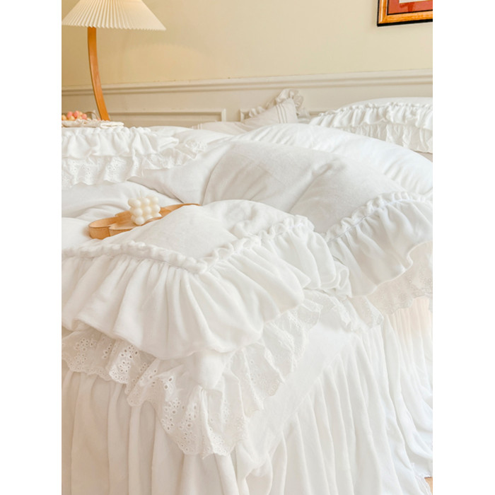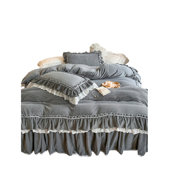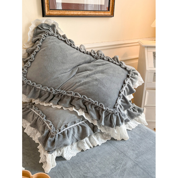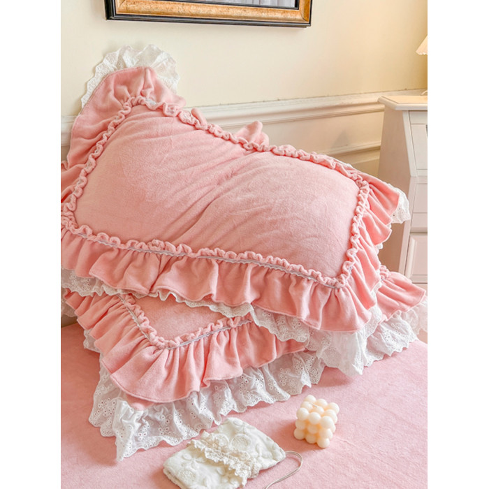 冬季少女心牛奶絨枕套一對裝48*74公主風雙層荷葉邊枕頭套珊瑚絨