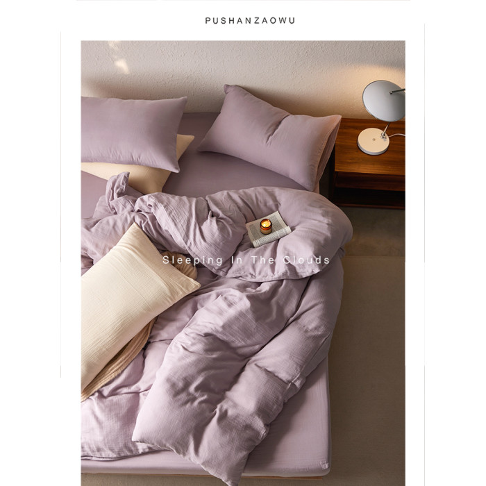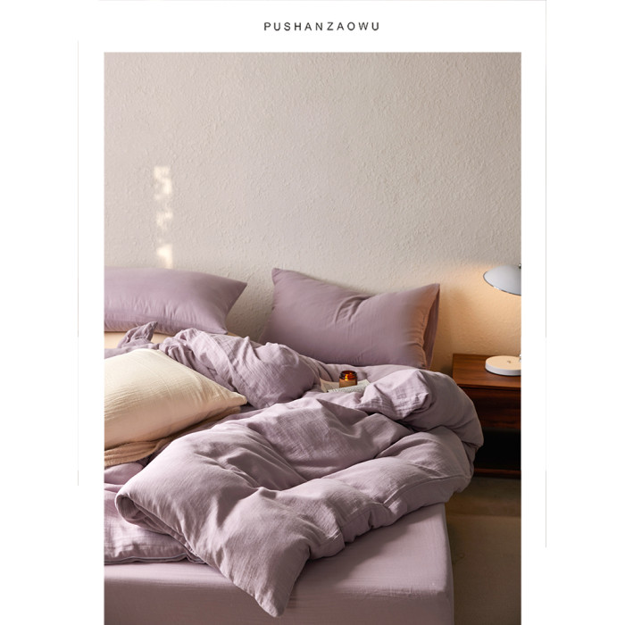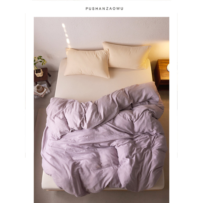 A類雙層皺皺紗純棉被套單件復古簡約全棉被罩150x200單人純色被單