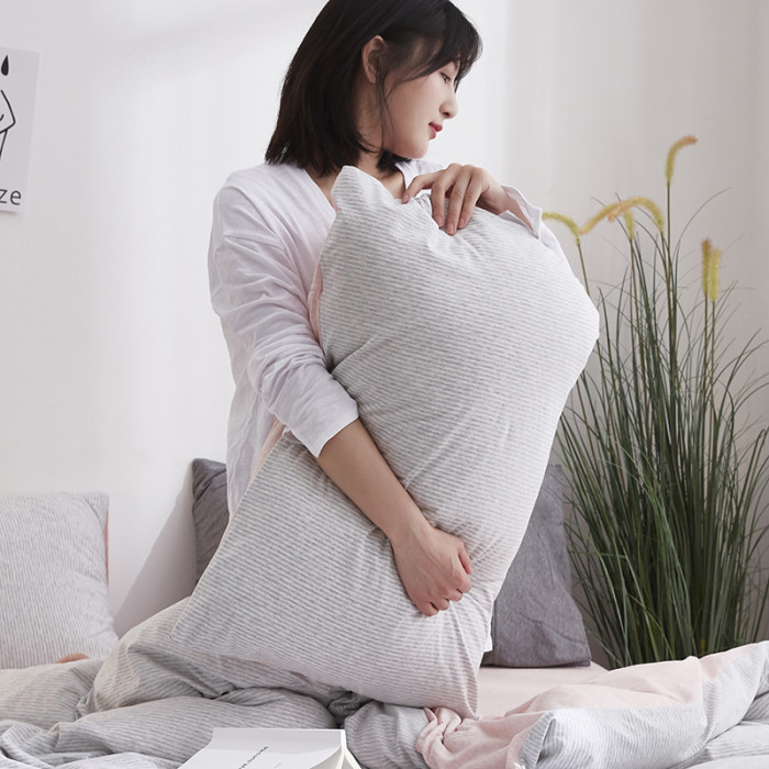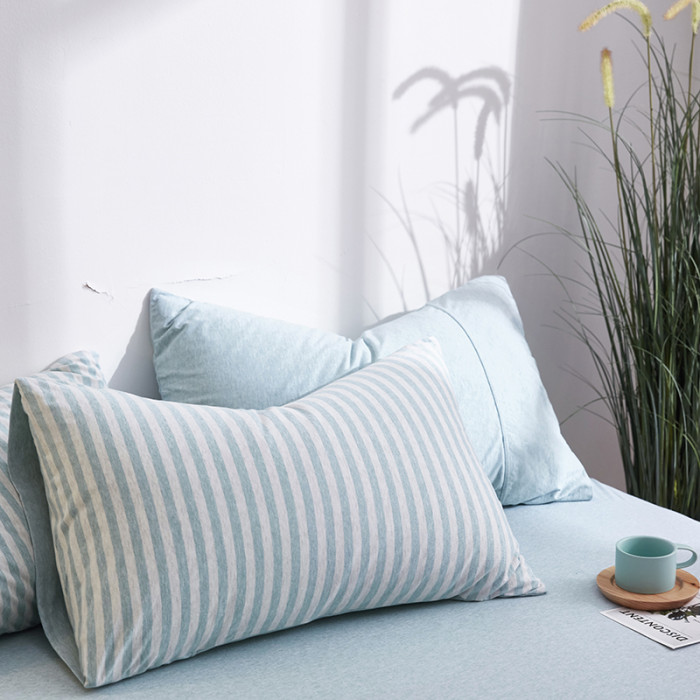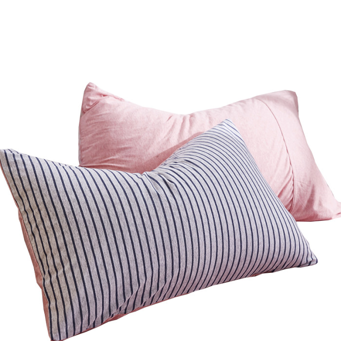 日式天竺棉條紋枕套針織棉全棉枕頭套一對純棉信封式兩衹裝枕芯套