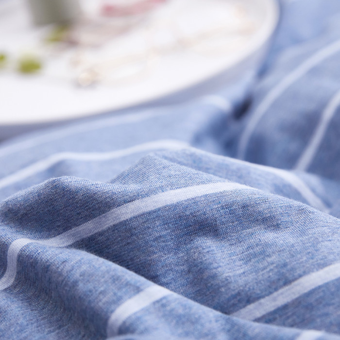 柔軟,親膚,裸睡是針織棉主要的特點,相比一般的全棉都要柔軟的多,帶給我們如內衣般的親膚觸感。先進的色織工藝,安全環保,即便是嬰兒或是孕婦都可以使用。