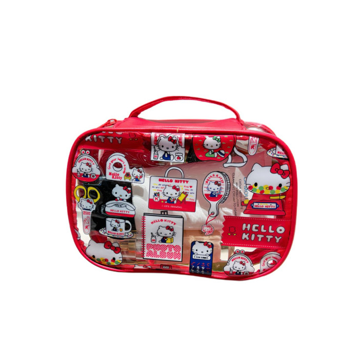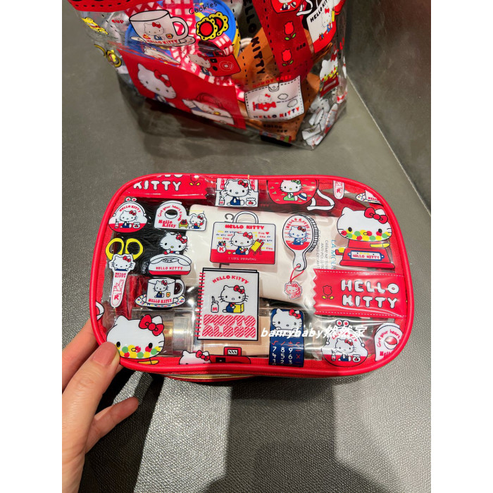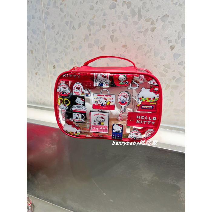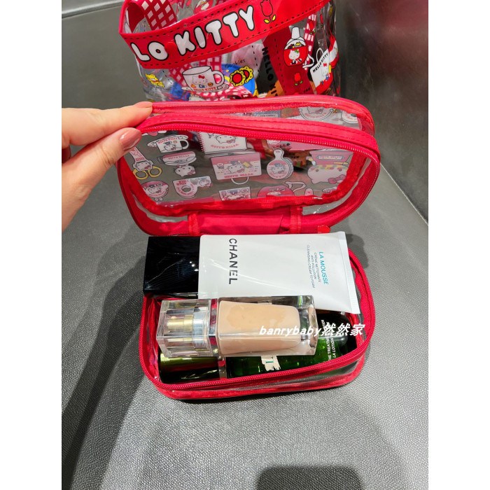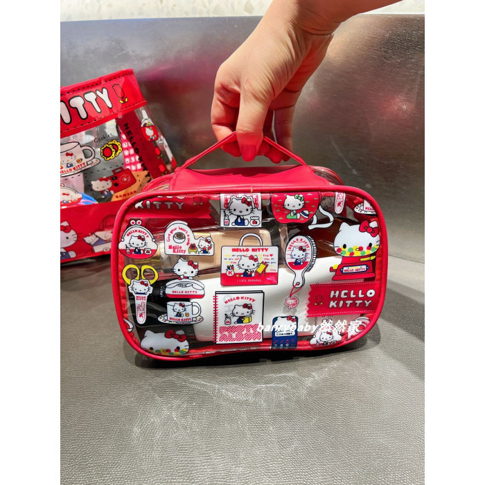 可愛kitty凱蒂貓化妝包PVC大容量防水手提收納包可攜式旅行洗漱包