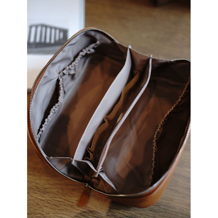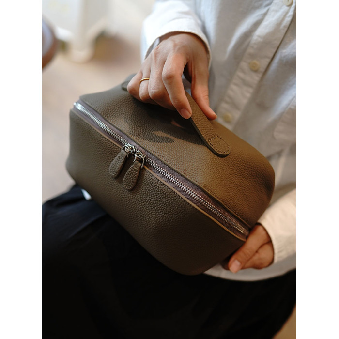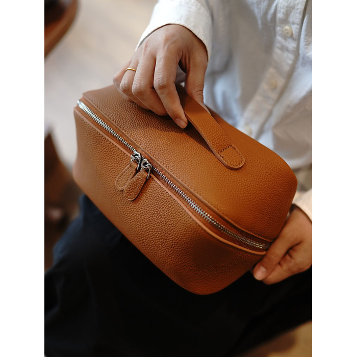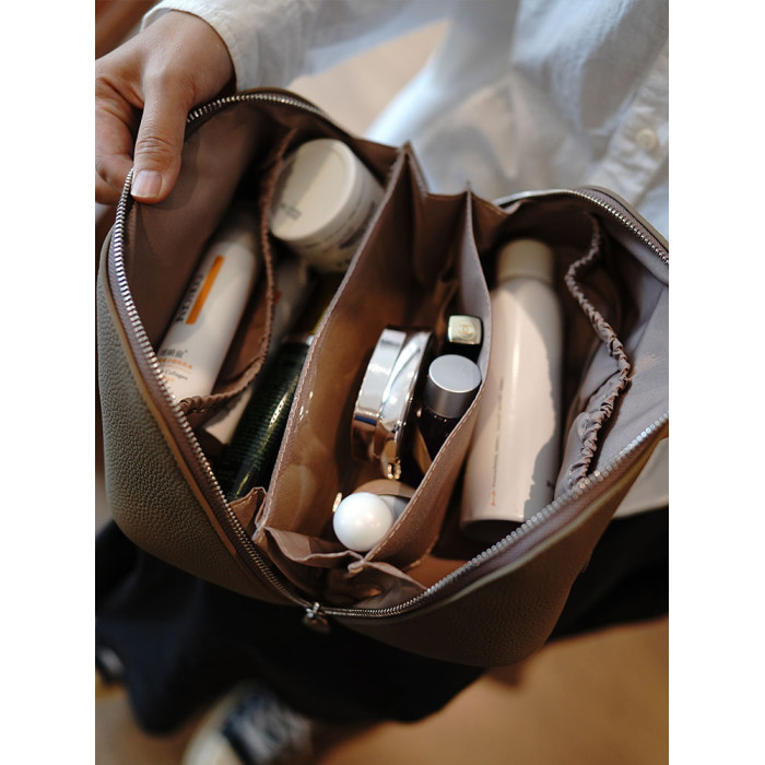 鹿小姐簡約高級感頭層牛皮洗漱包真皮旅行可攜式大容量化妝包收納包