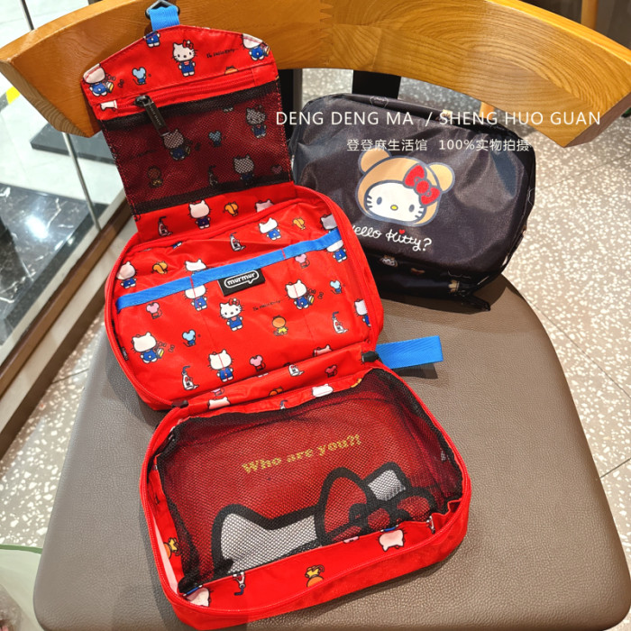日系貓咪小熊折曡可攜式家用化妝包旅行洗漱包多功能防塵收納掛袋