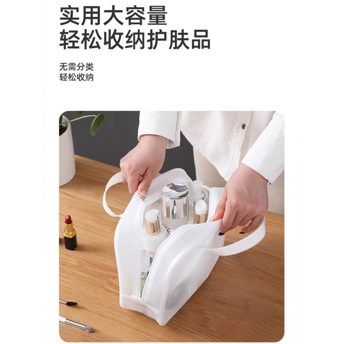 白色大號-手提款網格化妝包