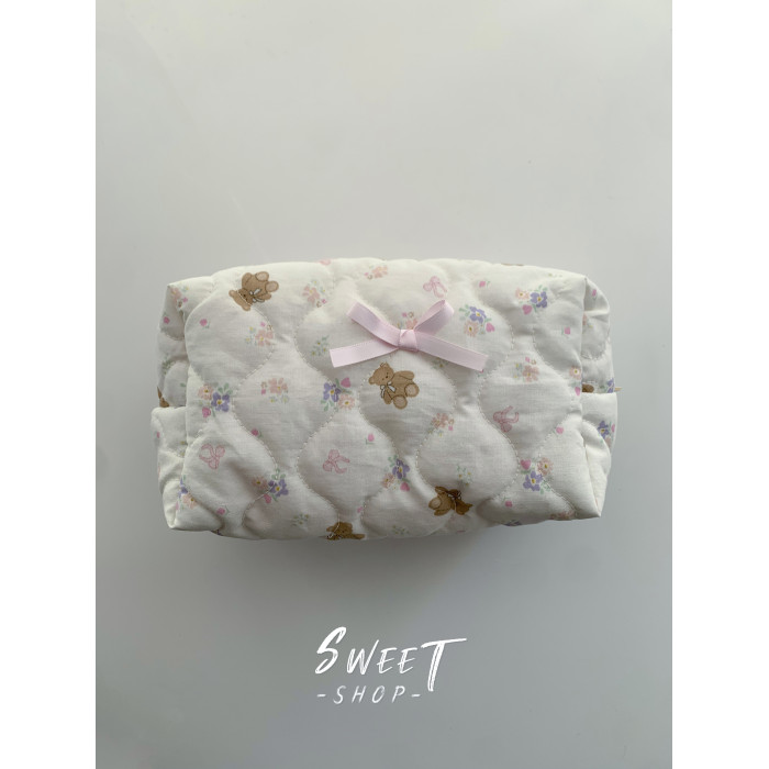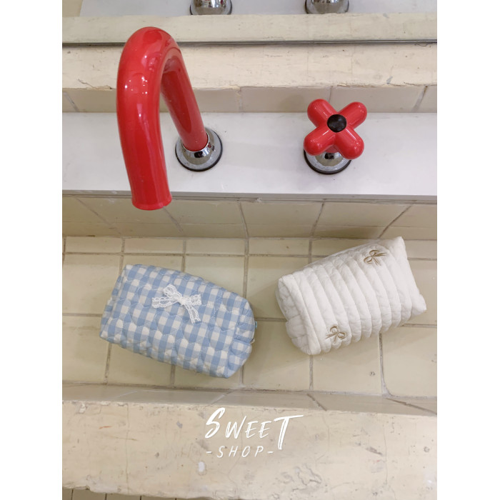 米色刺綉蝴蝶結化妝包