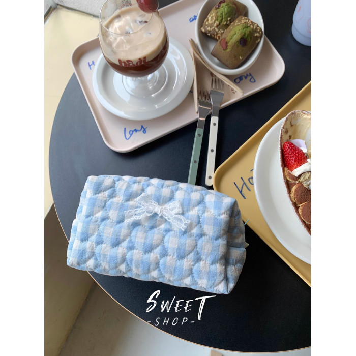抹茶綠格子化妝包