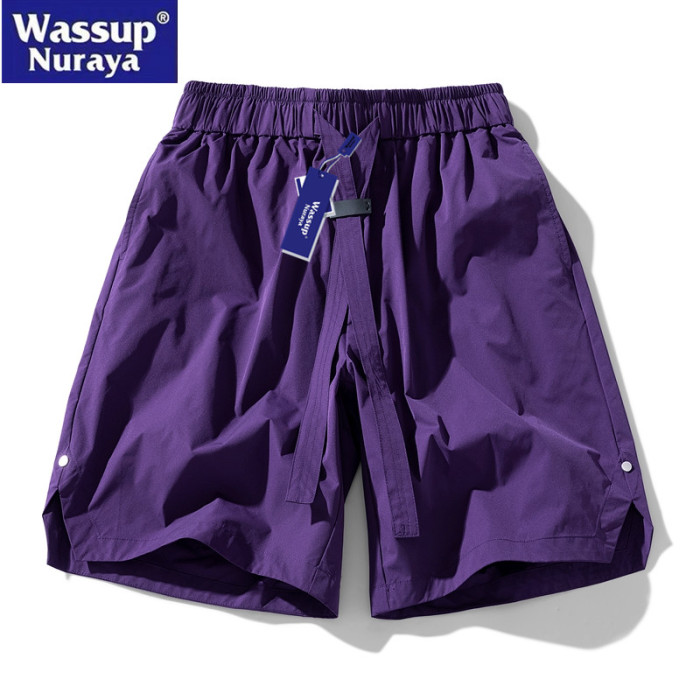 WASSUP Nuraya潮牌美式運動休閒短褲男夏季紫色薄款沙灘五分中褲