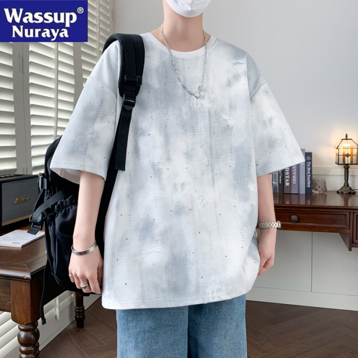 WASSUP NURAYA美式紥染髒髒短袖T恤男夏季潮寬松透氣大碼半袖上衣