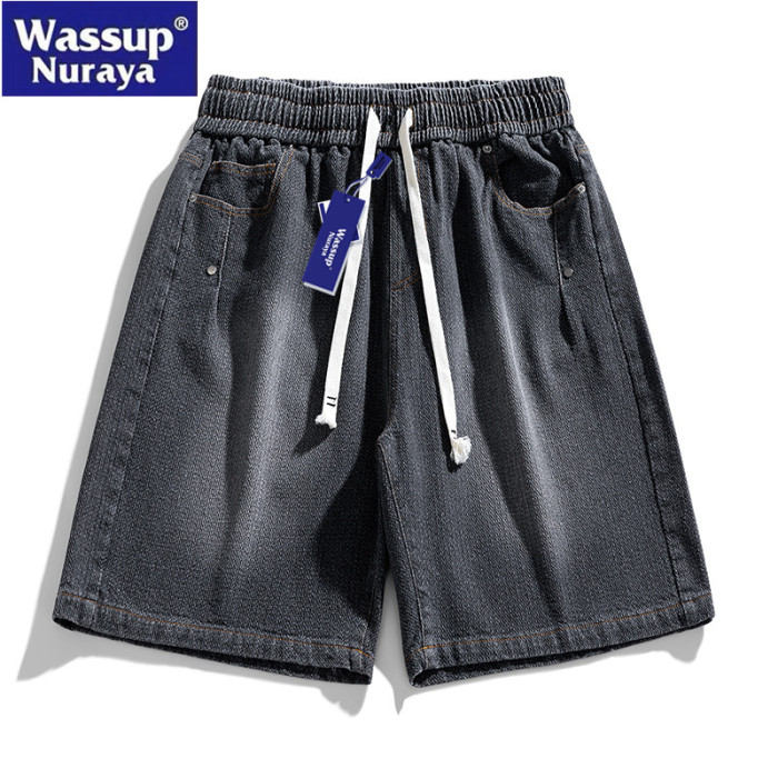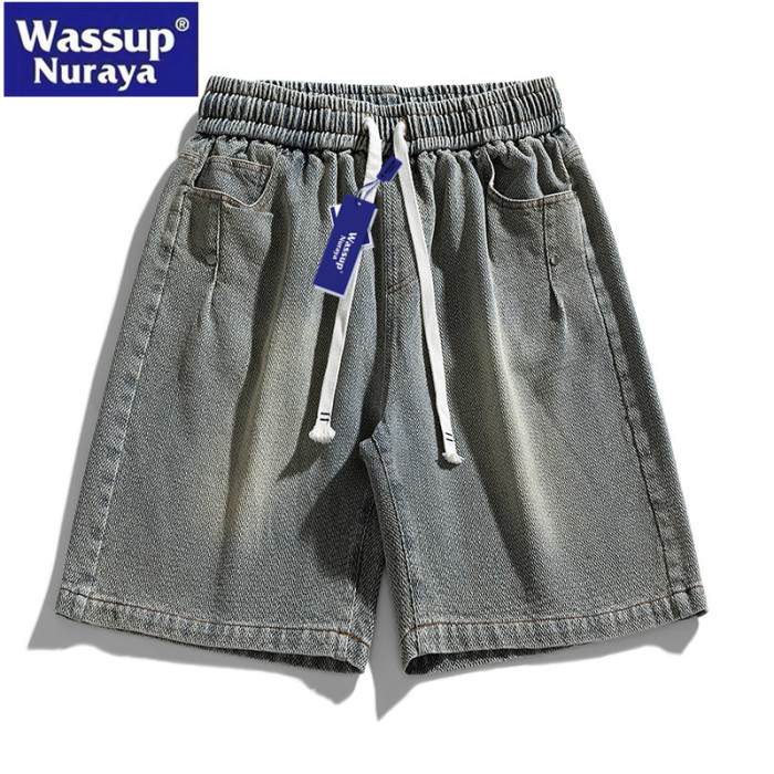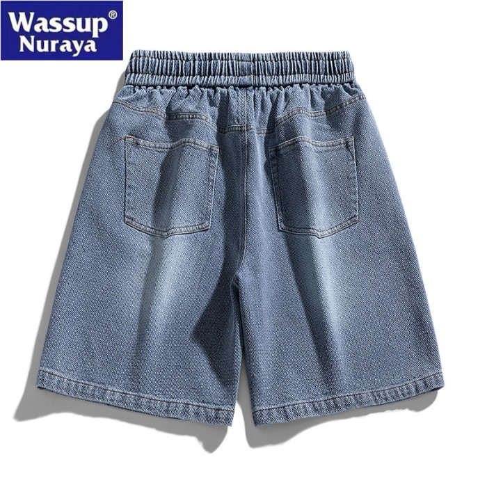 WASSUP Nuraya潮牌星空紋牛仔短褲男夏季美式復古高街直筒五分褲