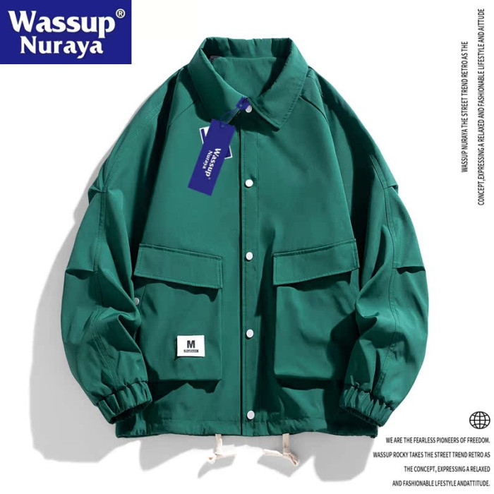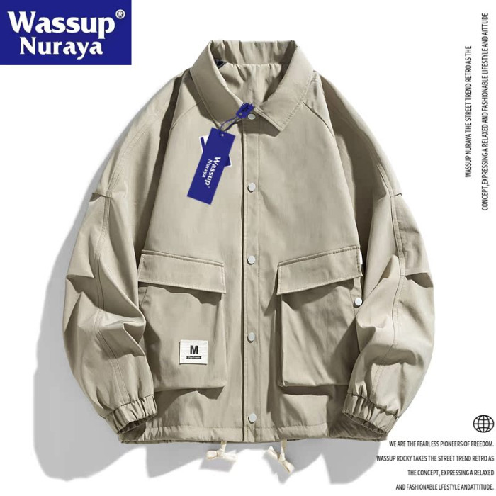WASSUP NURAYA2024春秋美式復古休閒潮牌簡約百搭襯衫夾克外套男