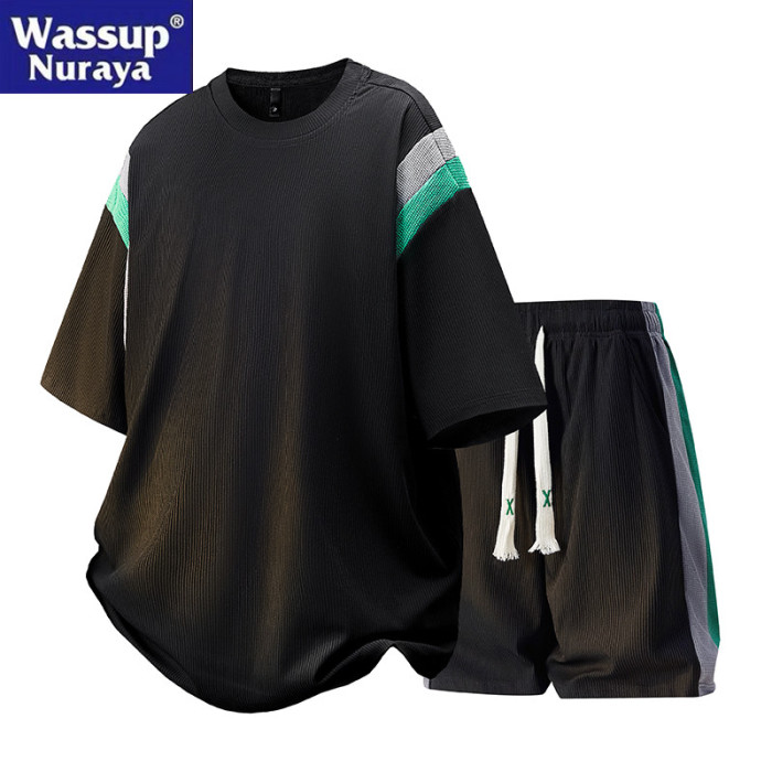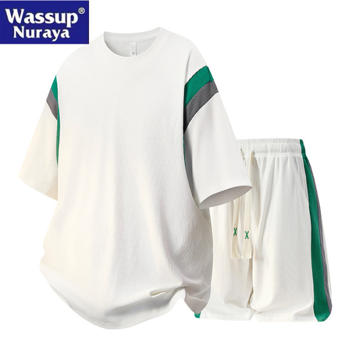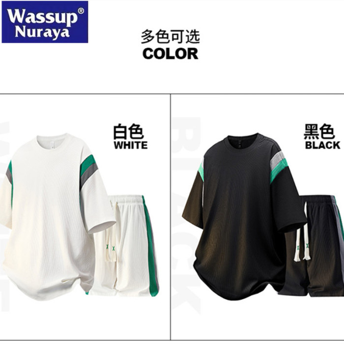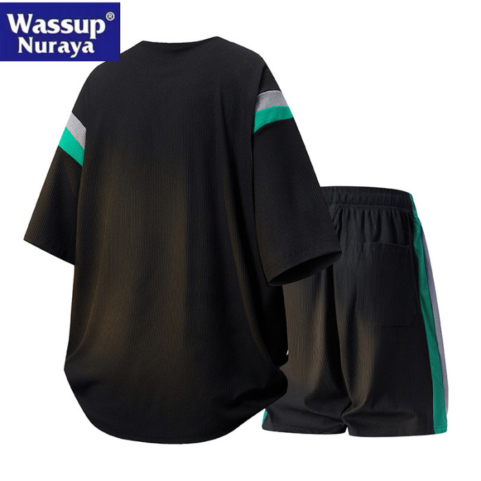 WASSUP Nuraya潮牌冰絲短褲T恤男夏季運動休閒五分褲短袖兩件套裝