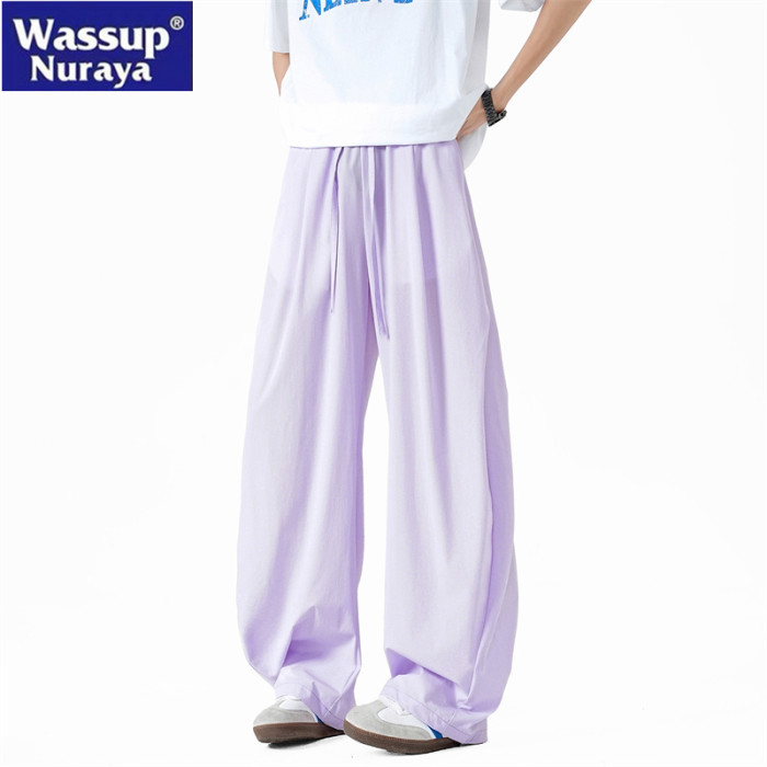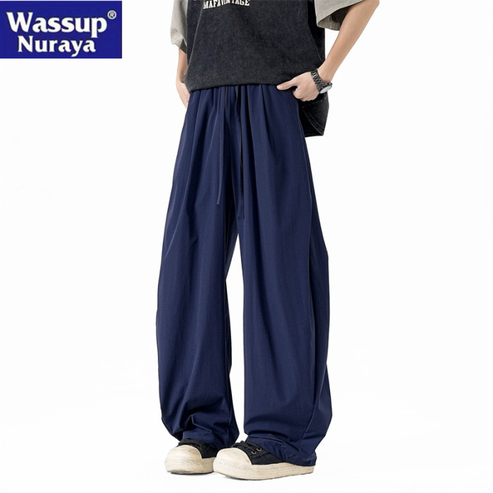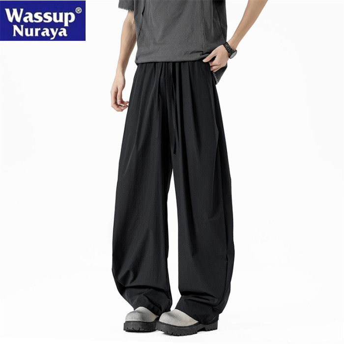 WASSUP NURAYA夏季戶外冰絲薄寬松情侶直筒速乾運動彎刀休閒褲男