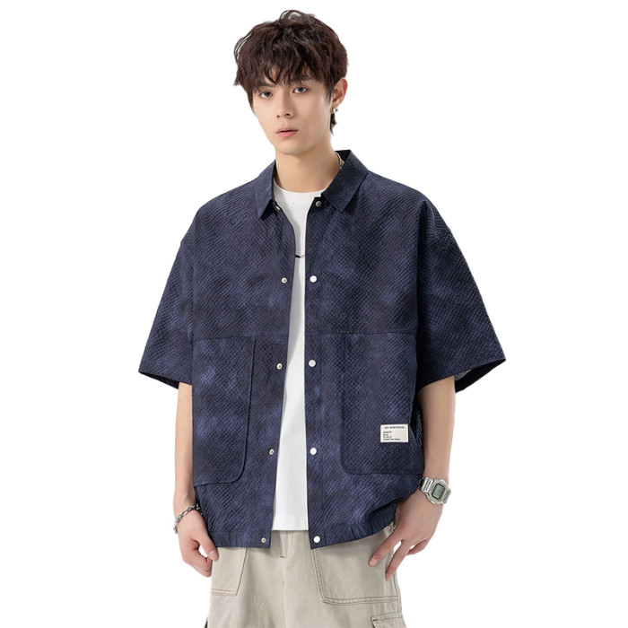 WASSUP NURAYA日系夏季冰絲短袖襯衫男加肥加大寬松休閒翻領襯衣