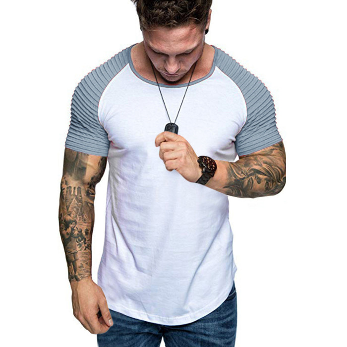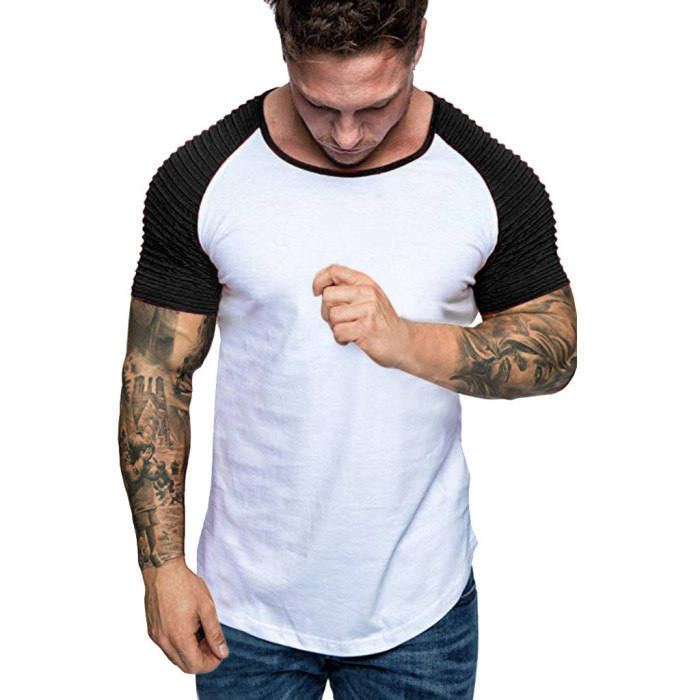 新款四季男士休閒運動T恤薄款修身時尚拼色T恤