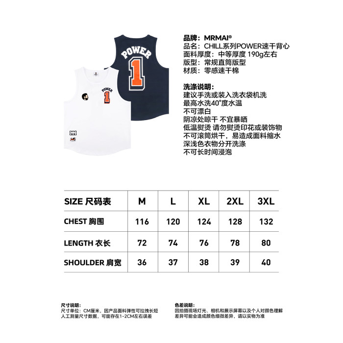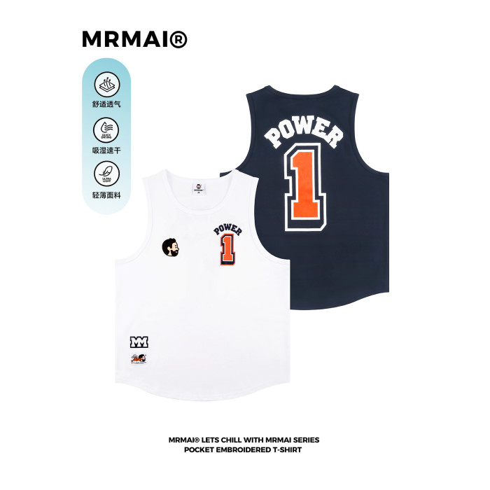 MRMAI CHIILL系列夏季1號白色藏青速乾透氣運動健身籃球印花背心