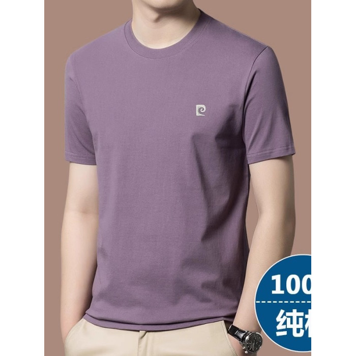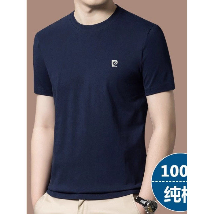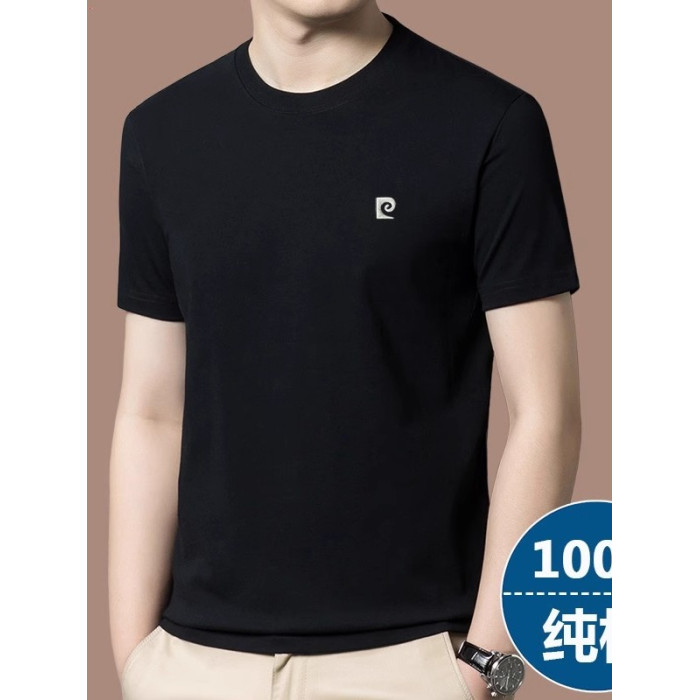 皮爾卡丹男t恤短袖夏季薄款純棉圓領白色半袖體恤男士打底上衣裝