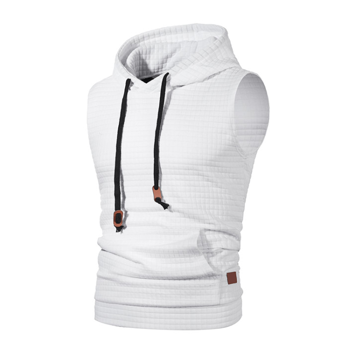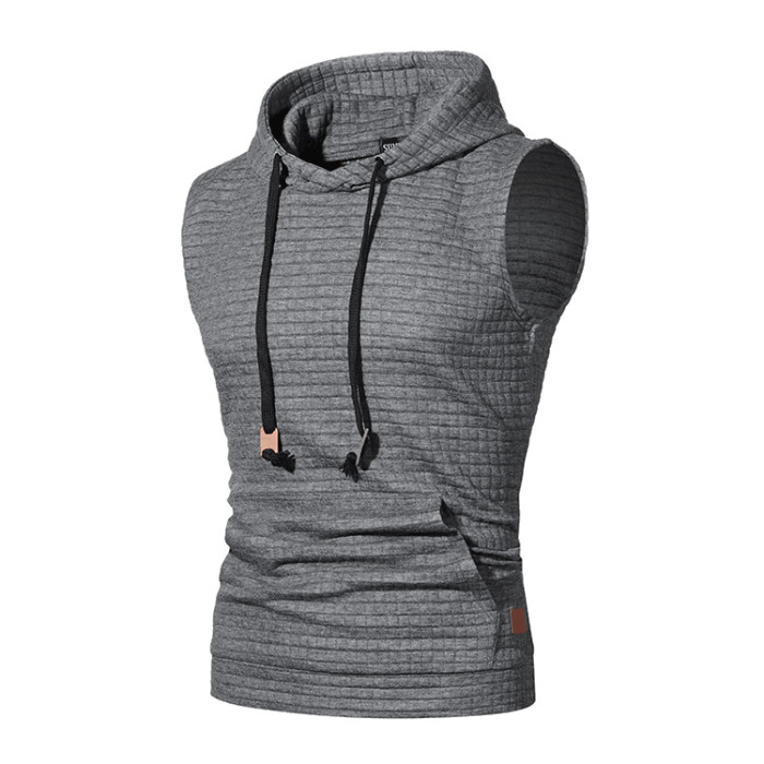 男式提花連帽運動衫無袖純色針織連帽衫套頭背心男