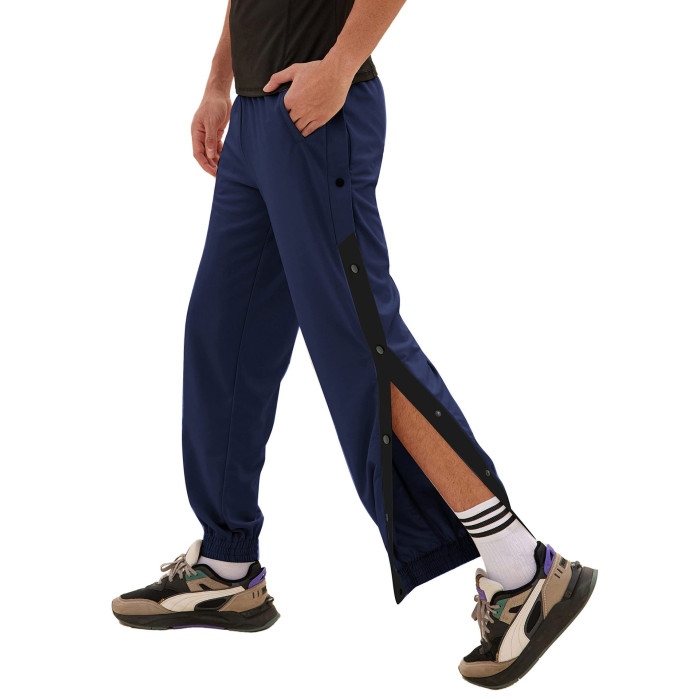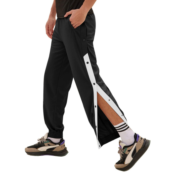 男士排釦褲男寬松束腳運動褲男全開釦休閒長褲子籃球訓練紐釦褲