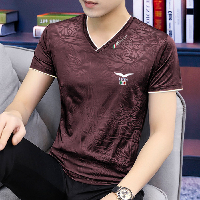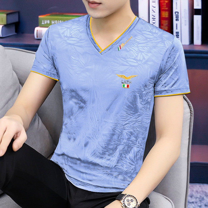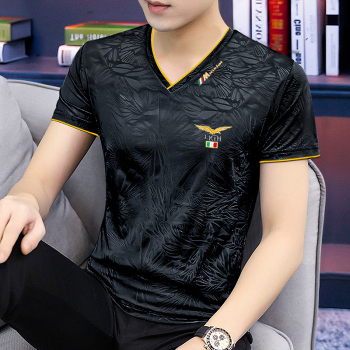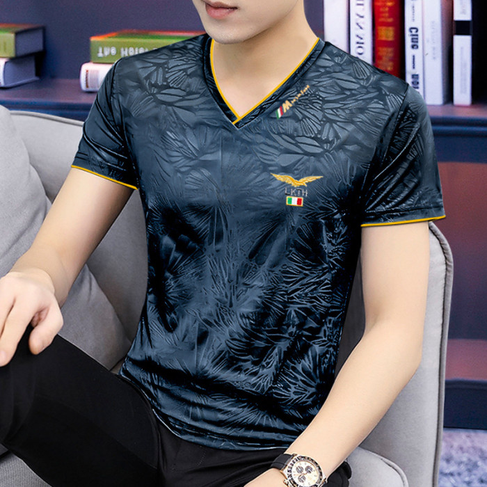 夏季新款冰絲男士短袖t恤潮流打底衫上衣服男裝高級涼感速乾透氣